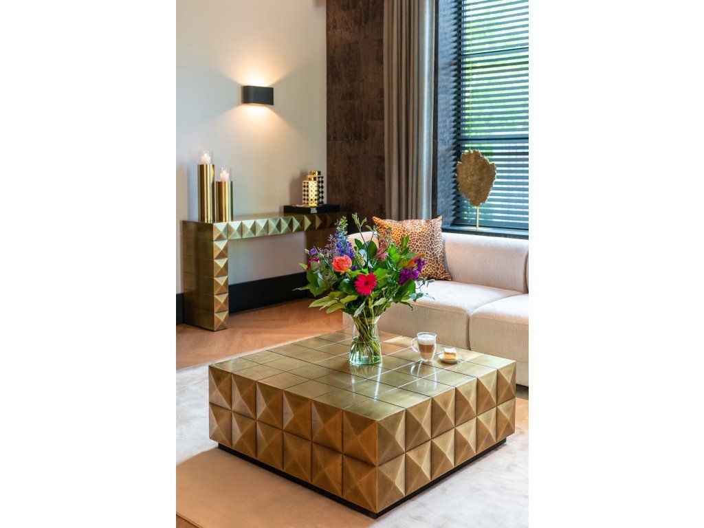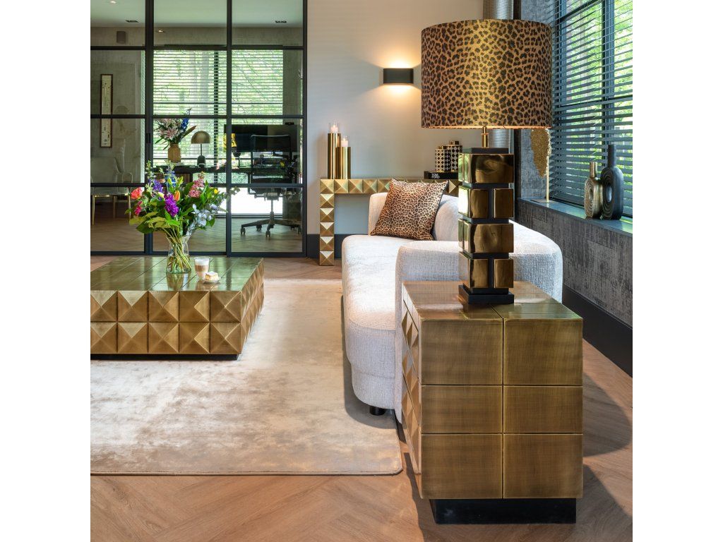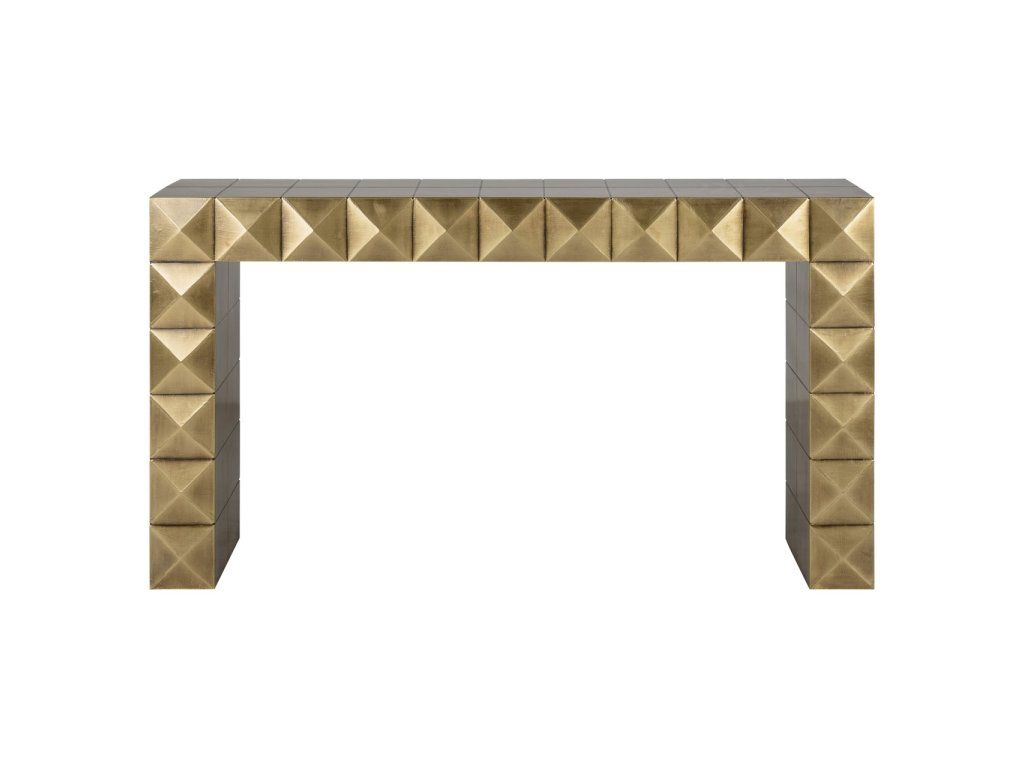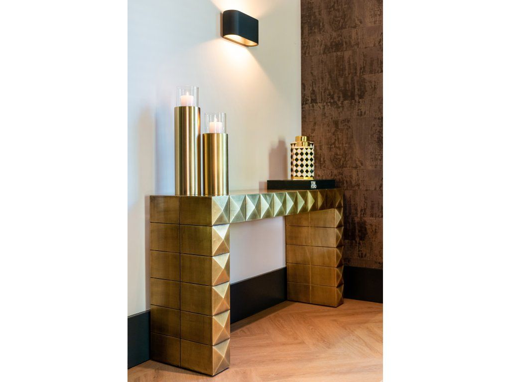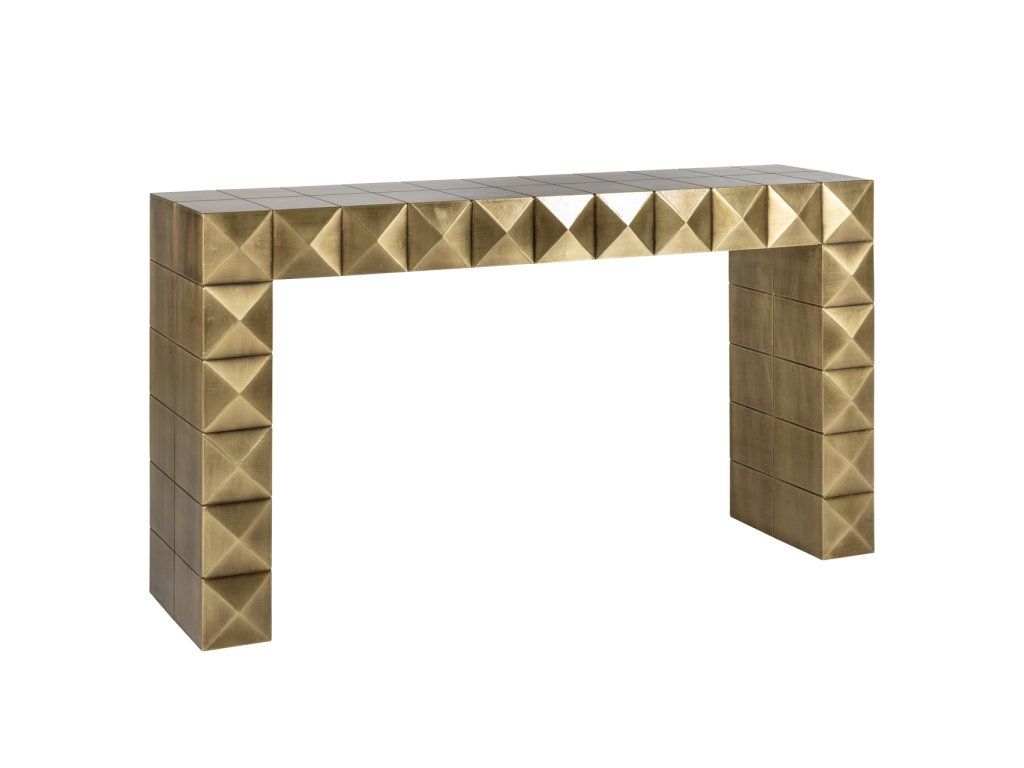 Konzolový stolík Collada je jedinečný dizajn od spoločnosti Richmond so zlatou povrchovou úpravou a pútavým motívom pyramídy. Tento konzolový stolík dodá každému interiéru nádych pôvabu a štýlu. Zlatá farebná schéma vytvára luxusný vzhľad, zatiaľ čo motív pyramídy dodáva dekoratívny prvok, ktorý púta pozornosť. Konzolový stolík je starostlivo navrhnutý s dôrazom na detail a remeselné spracovanie. Či už zariaďujete vstupnú halu, obývaciu izbu alebo jedáleň, konzolový stolík Collada je praktickou a štýlovou voľbou, ktorá kombinuje funkčnosť a eleganciu.Dodatočné parametre