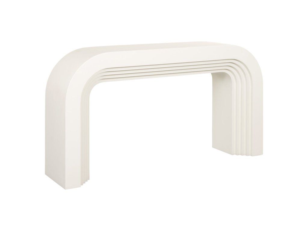 Tento konzolový stolík je vyrobený z MDF a je povrchovo upravený ľahkou vrstvou eko-sadry. Dizajn sa vyznačuje okrúhlymi, vrstvenými tvarmi, ktoré mu dodávajú jednoduchý a decentný vzhľad. Materiály prispievajú k pevnej konštrukcii a neutrálna povrchová úprava robí tento stolík vhodným do rôznych štýlov interiéru. Je to funkčný kus, ktorý sa nenápadne integruje do vášho priestoru.Dodatočné parametre