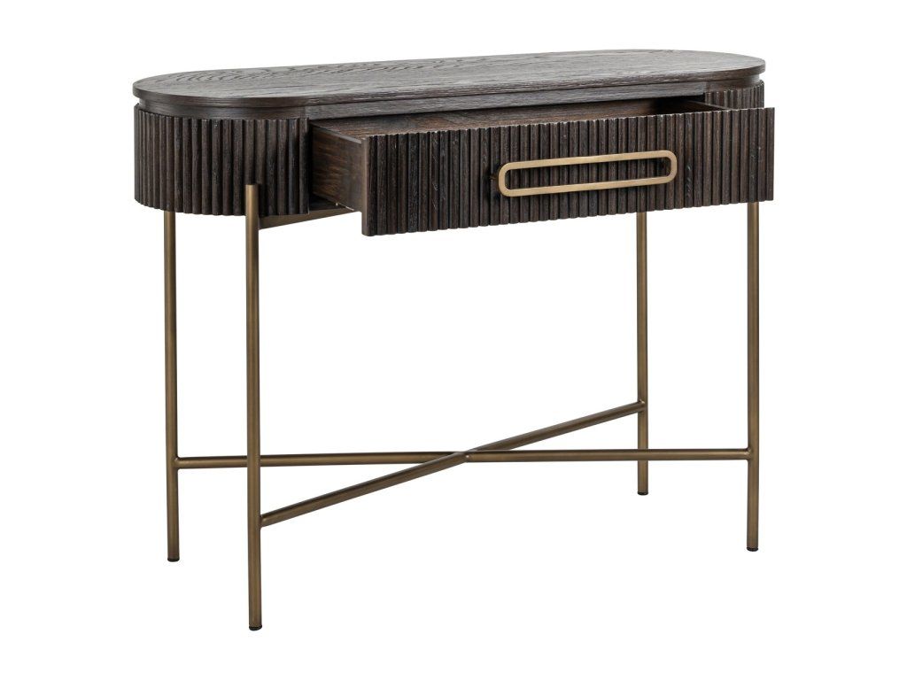 Konzolový stolík Luxor s 1 zásuvkou kombinuje funkčnosť s eleganciou. Tento stolík je ideálny do vašej chodby, obývačky alebo akéhokoľvek iného priestoru, kde potrebujete štýlový úložný priestor. Jedna zásuvka poskytuje dostatok úložného priestoru na vaše potrebné veci a jeho elegantný dizajn zaručuje, že sa hodí do každého interiéru.Dodatočné parametre