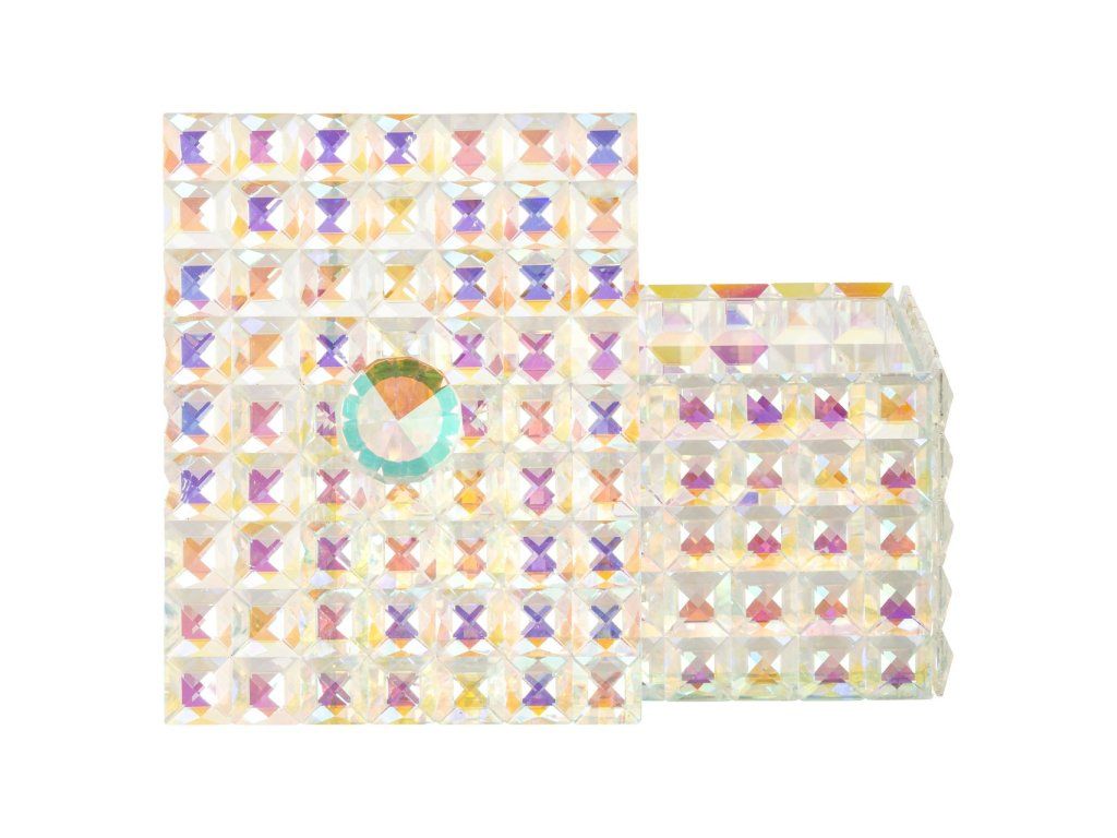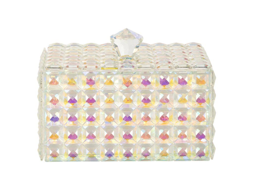 Táto očarujúca šperkovnica kombinuje funkčnosť s krásnym dizajnom. Dúhový efekt jej dodáva jedinečný vzhľad, vďaka čomu budú vaše šperky uložené nielen bezpečne, ale aj štýlovo. Skutočný pútač pozornosti do každého interiéru.Dodatočné parametre