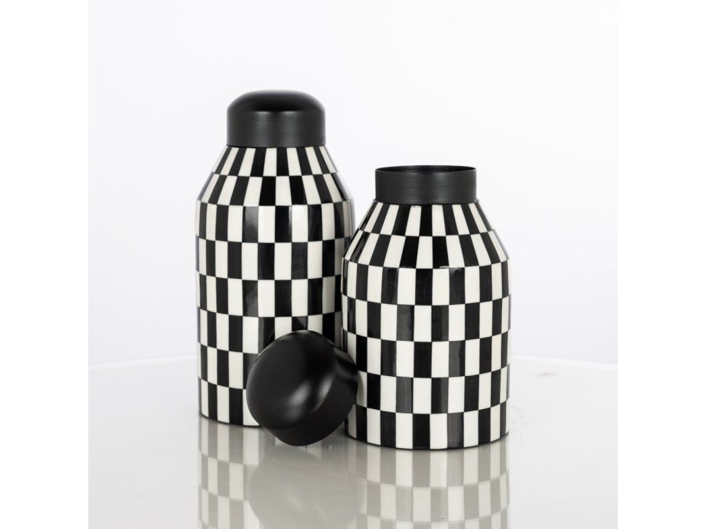 Tento jedinečný kvetináč okamžite vynikne svojím čiernobielym kockovaným dizajnom. Čisté línie a kontrast medzi čiernou a bielou dodávajú moderný vzhľad, zatiaľ čo kockovaný vzor dodáva nádych retro šarmu. Kvetináč Malou, vyrobený s dôrazom na detail, je nielen funkčný, ale aj skutočným pútačom pozornosti v každom interiéri. Či už sa používa na vystavenie rastliny alebo jednoducho ako samostatný dekoratívny predmet, tento kvetináč okamžite dodá charakter a štýl každému priestoru. Kvetináč Malou, ktorý je k dispozícii v malých aj veľkých veľkostiach, ponúka všestrannosť a prispôsobivosť rôznym potrebám v oblasti dekorácie. Je to dokonalá kombinácia funkčnosti a estetiky.Dodatočné parametre