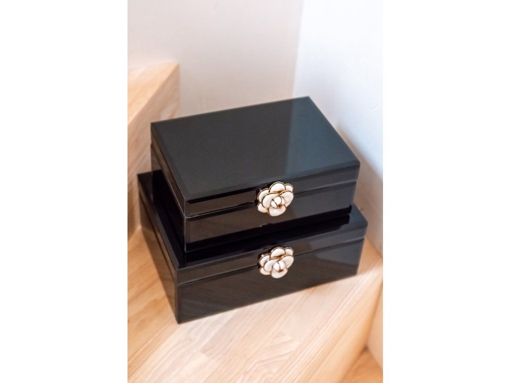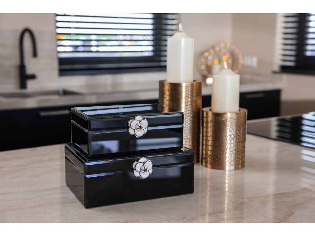 Malá šperkovnica Vivy sa prezentuje ako elegantný úložný systém pre vaše cennosti. Tmavo čierna farba krabičky je zdobená jemnými zlatými detailmi, ktoré jej dodávajú nádych luxusu. Táto krabička je nielen praktická na uloženie vašich šperkov, ale slúži aj ako štýlový dekoratívny prvok na vašom toaletnom stolíku alebo nočnom stolíku.Dodatočné parametre