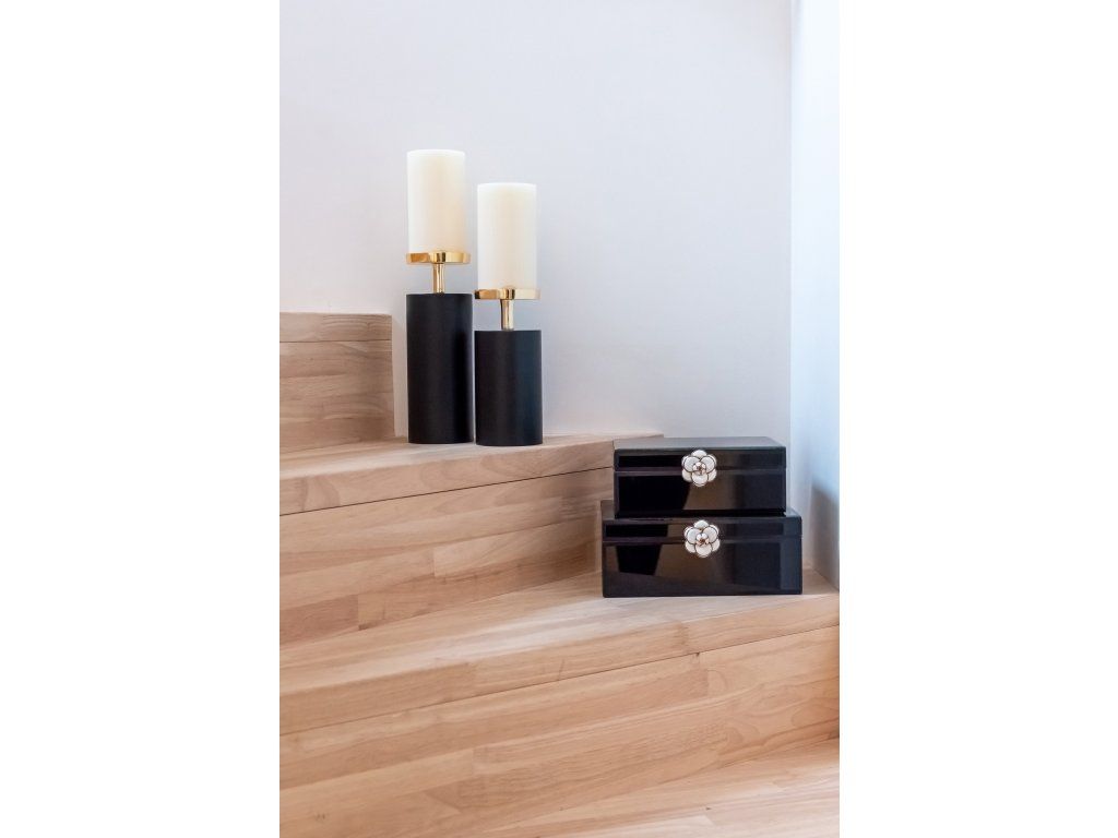 Malá šperkovnica Vivy sa prezentuje ako elegantný úložný systém pre vaše cennosti. Tmavo čierna farba krabičky je zdobená jemnými zlatými detailmi, ktoré jej dodávajú nádych luxusu. Táto krabička je nielen praktická na uloženie vašich šperkov, ale slúži aj ako štýlový dekoratívny prvok na vašom toaletnom stolíku alebo nočnom stolíku.Dodatočné parametre