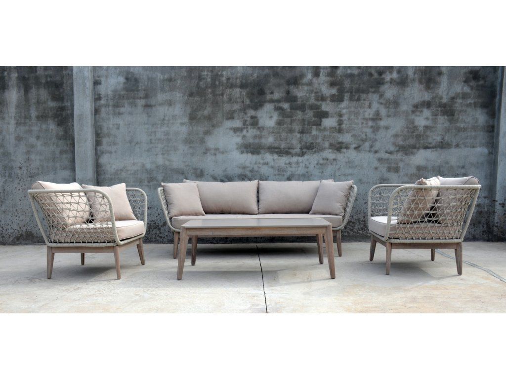Kreslo JAVI 95X77X73CM Akácia brúsená sivá, béžová šnúrka, béžová polyesterová látka