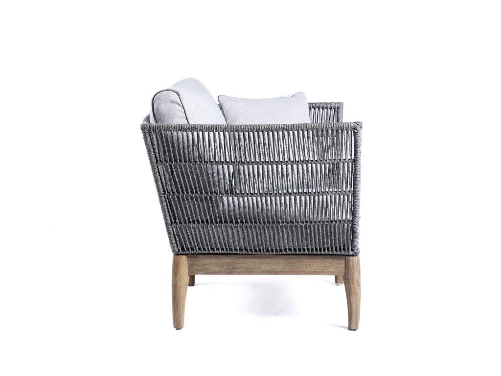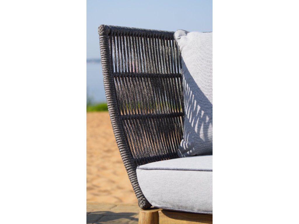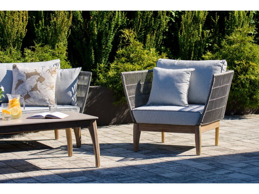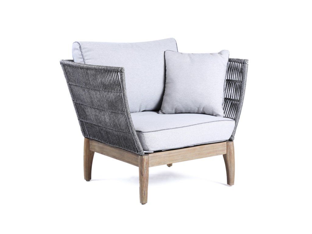 Kreslo Parado 87x74x71, brúsená akácia, sivý povraz, svetlosivá polyesterová tkanina
