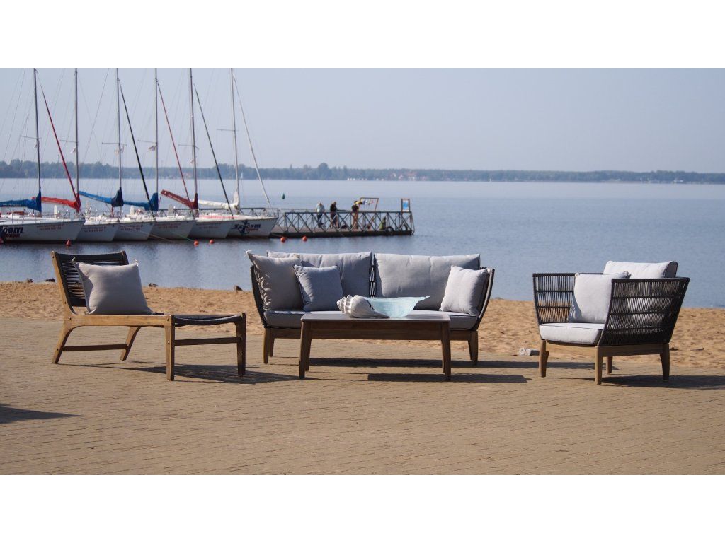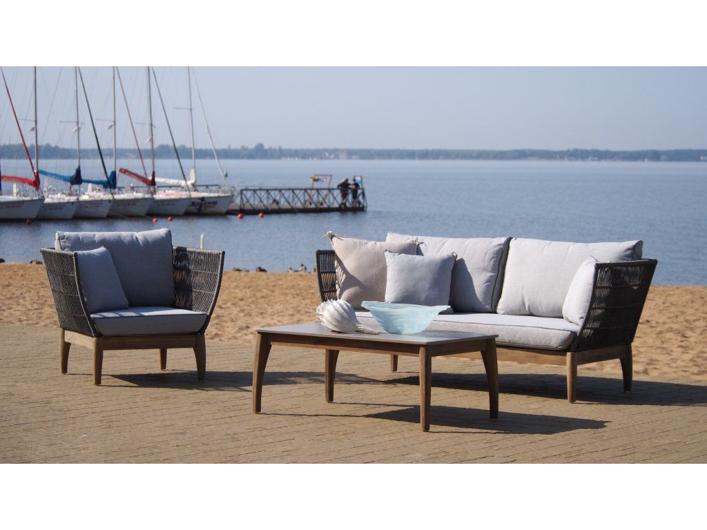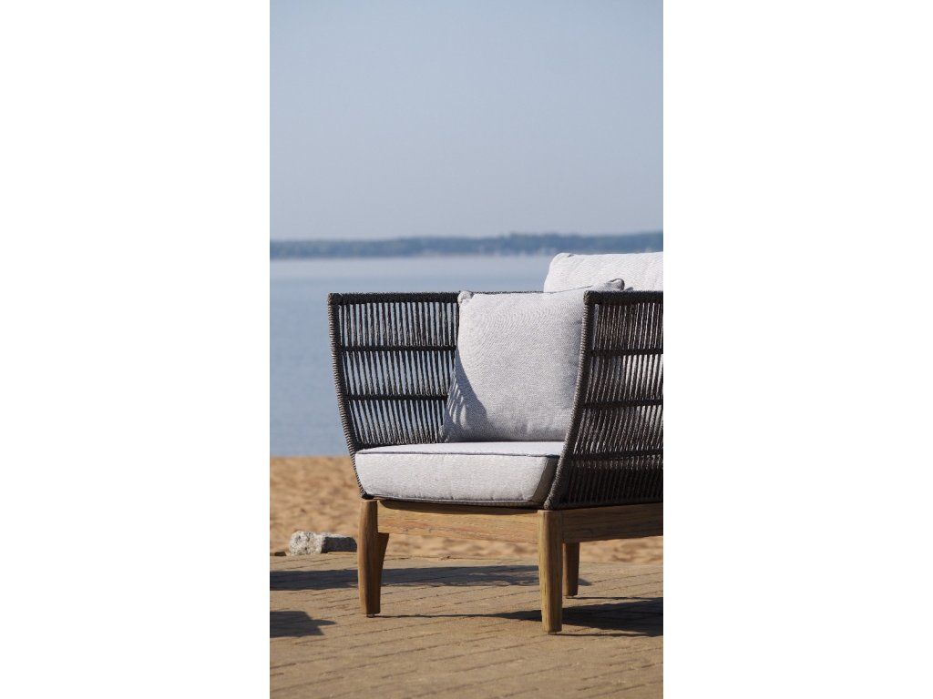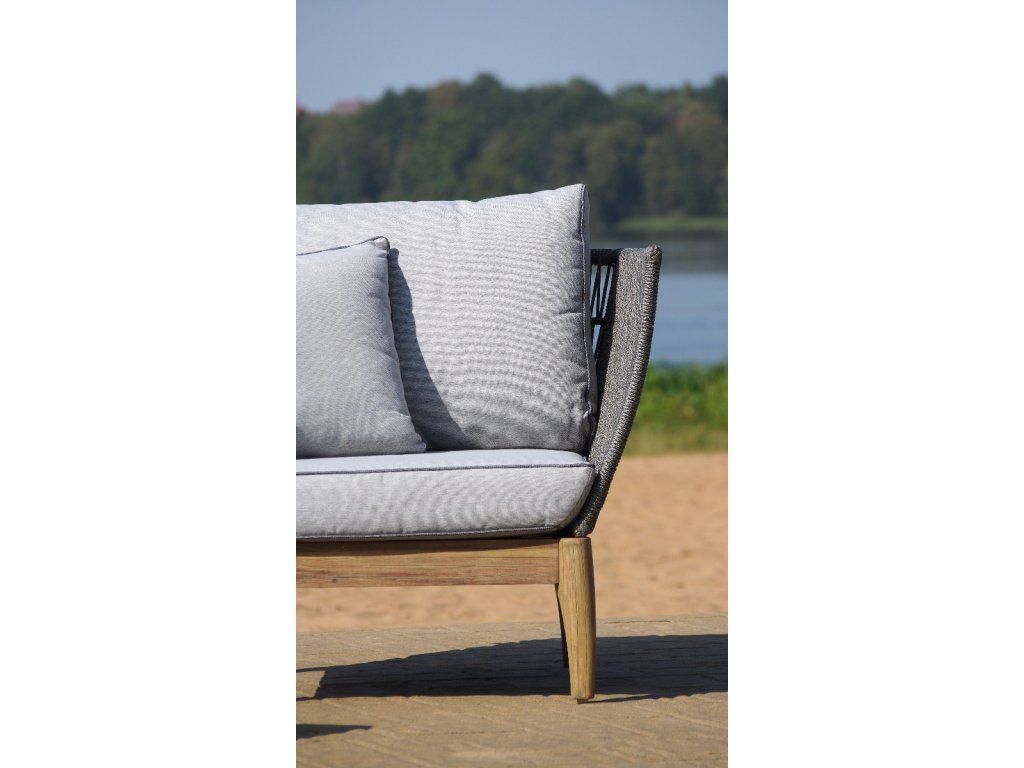 Kreslo Parado 87x74x71, brúsená akácia, sivý povraz, svetlosivá polyesterová tkanina