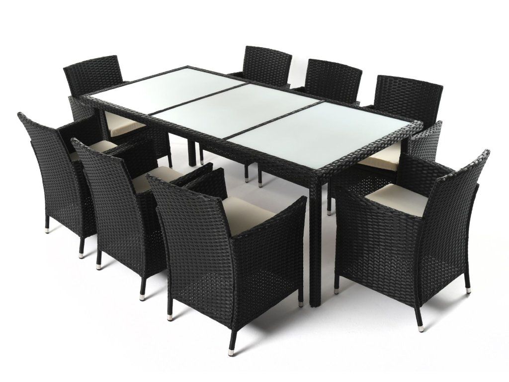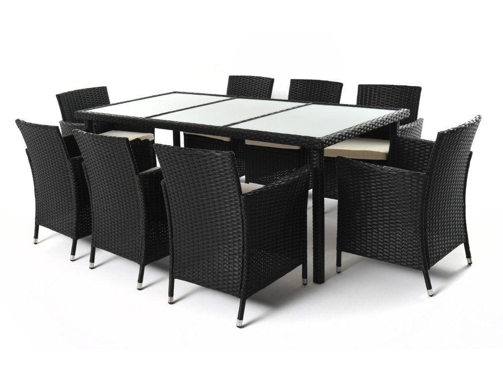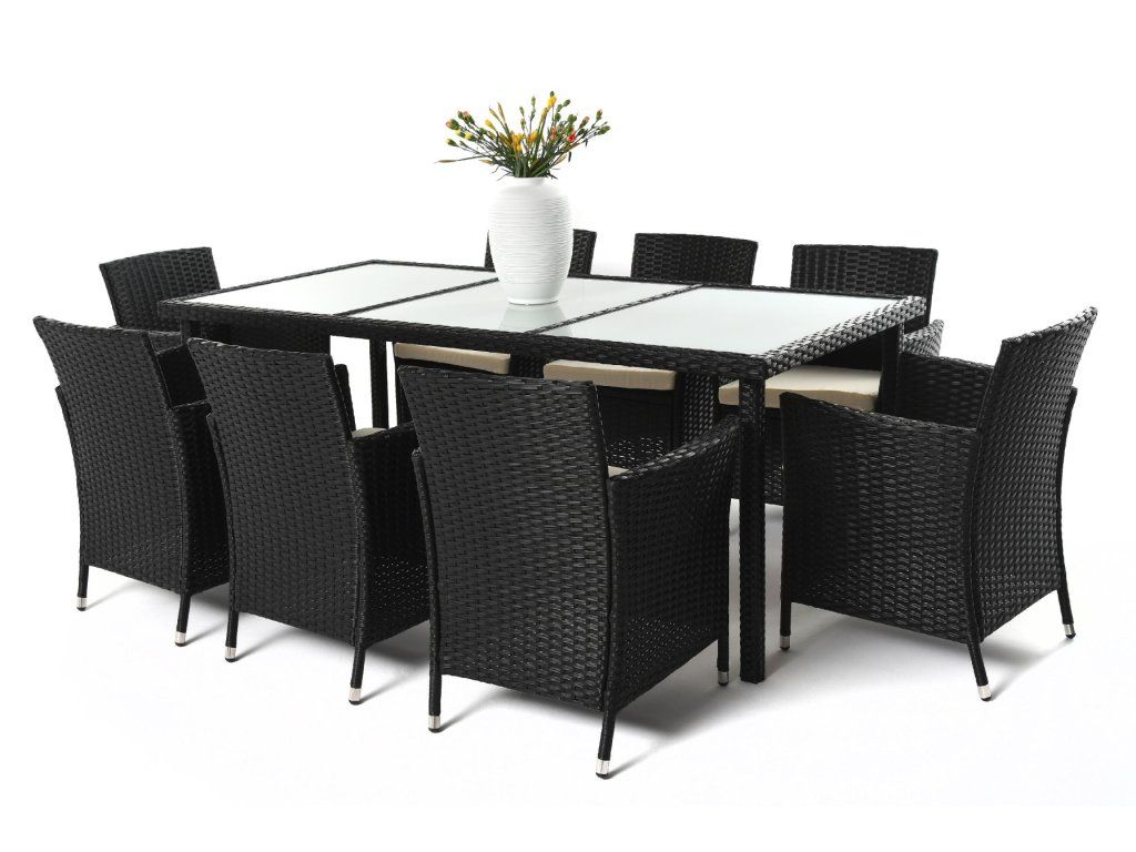 Záhradná súprava Morea je odolná voči poveternostným vplyvom, vďaka čomu je ideálna na záhradné úpravy. Vďaka modernému dizajnu a precíznej povrchovej úprave je lídrom v interiérovom dizajne záhrad. Môže sa použiť aj ako jedálenský set. Súprava je odolná vďaka použitiu najkvalitnejších materiálov. Nábytok je vyrobený z technoratanu. Pozostáva z ôsmich kresiel s béžovými vankúšmi a veľkého stola. Parametre stola: farba: čierna materiál: technorattan, sklo, oceľ tvar dosky: obdĺžnikový rozmery dosky: 190 x 90 cm výška stola: 74 cm max. nosnosť: 50 kg Parametre kresla: rozmery: 60 x 54 x 80 cm hmotnosť: 6,2 kg sedadlo v cene, béžová max. nosnosť: 110 kg VÝROBOK JE URČENÝ NA POUŽITIE V DOMÁCNOSTI A NEMÔŽE BYŤ POUŽÍVANÝ NA KOMERČNÉ ÚČELY. STÔL A STOLIČKY SÚ URČENÉ NA SAMOSKLADANIE PODĽA POKYNOV, KTORÉ SU SÚ SÚČASŤOU OBALU.Dodatočné parametre