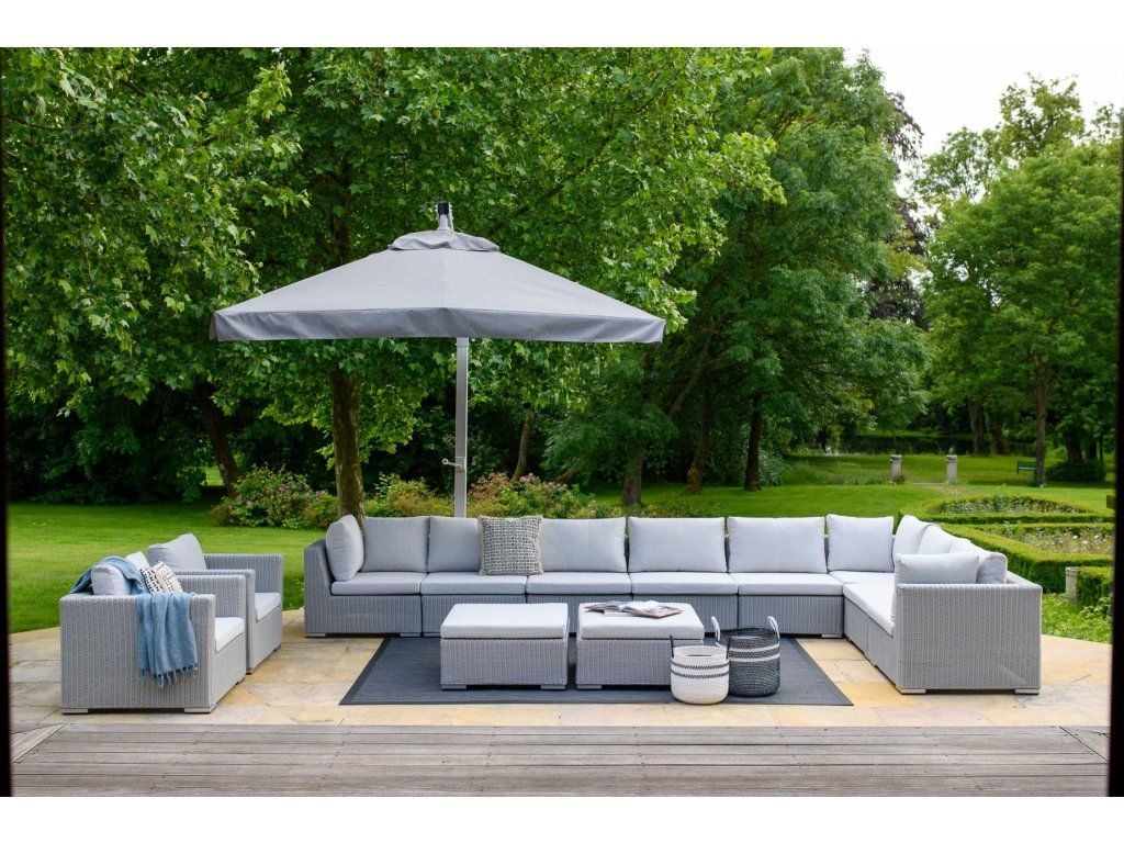 Opierka na nohy AIRA 75X75X30CM HLINÍKOVÝ RÁM, SIVÝ EKO RATAN, SVETLOSIVÝ SLNEČNÝ VANKÚŠ