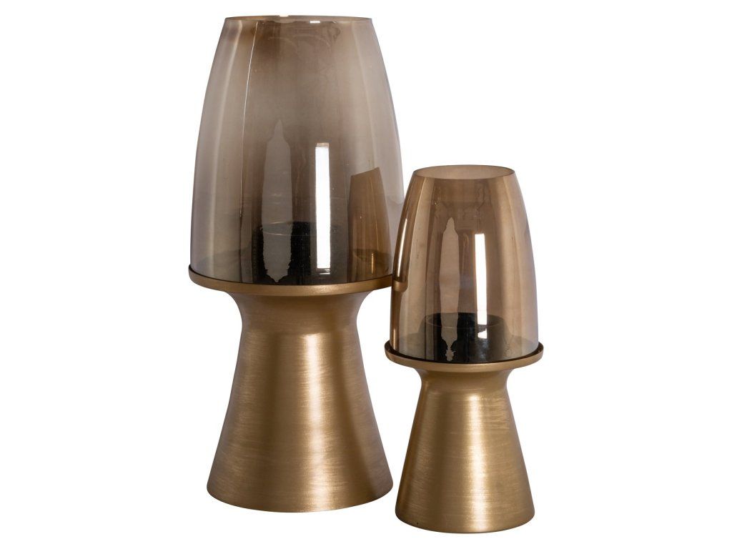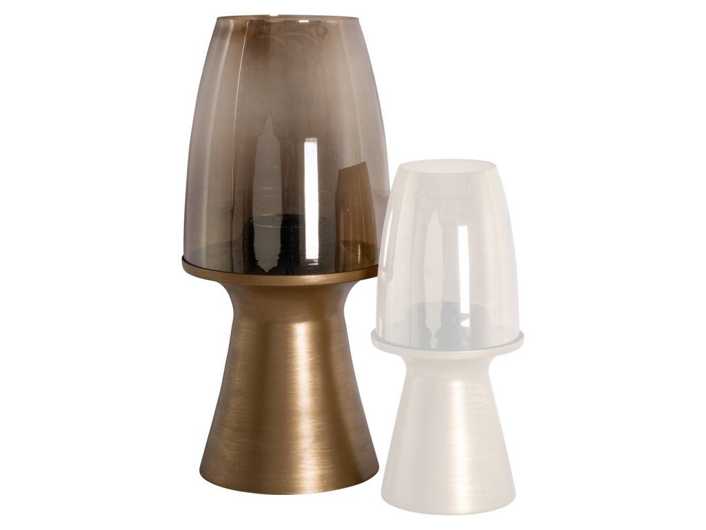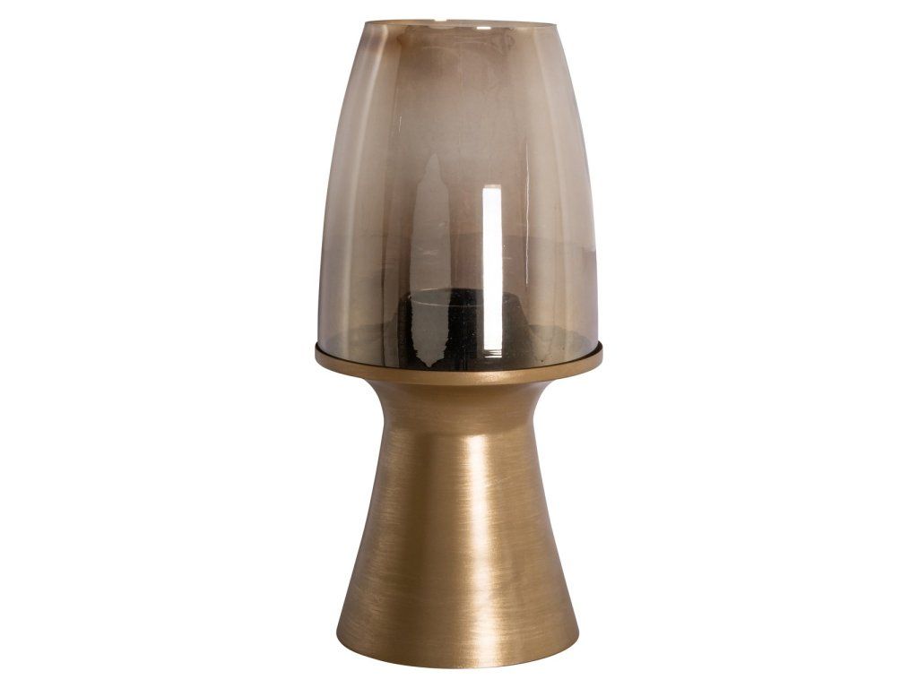 Veľká lampa Hurricane Danea má podstavec z brúseného zlata so sklenenou vrchnou časťou. Rafinovaný dizajn, ktorý dodáva teplé svetlo sviečok a moderný nádych.Dodatočné parametre