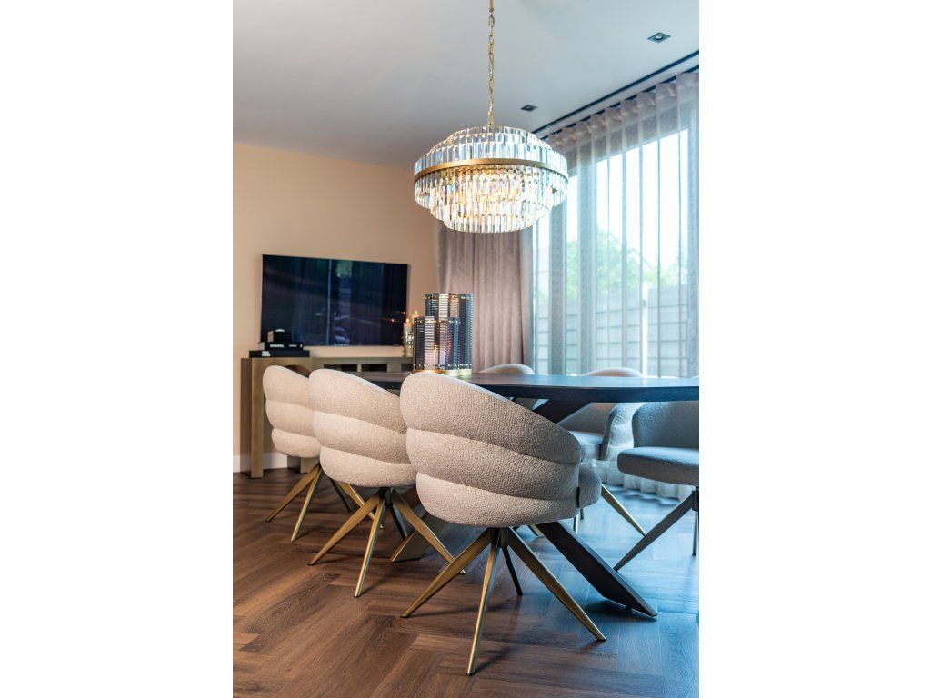 Závesná lampa Desire je perfektným doplnkom vášho interiéru! Vďaka elegantnému dizajnu a zlatým detailom dodá táto lampa každej miestnosti nádych pôvabu a luxusu. Početné závesné svietidlá dodávajú lampe klasický vzhľad a po zapnutí vytvárajú krásnu hru svetla. Závesná lampa Desire je dostupná v štandardnej veľkosti, ako aj v menšej variante pre tých, ktorí hľadajú decentnejší vzhľad.Dodatočné parametre