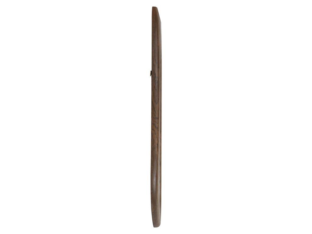 Toto zrkadlo má jemný zaoblený tvar s rámom v teplom hnedom odtieni. Rovný okraj vytvára decentný vzhľad. Jeho prirodzená farba umožňuje zrkadlu dobre zapadnúť do interiérov so zemitými tónmi a zároveň dodáva stene vizuálnu hĺbku.Dodatočné parametre