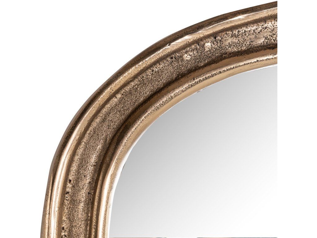 Toto zrkadlo má zaoblený tvar s rafinovaným rámom. Mosadzná povrchová úprava s jemne zostarnutým vzhľadom dodáva zrkadlu teplý a decentný vzhľad. Jeho vyvážený dizajn sa hodí do rôznych štýlov interiéru.Dodatočné parametre