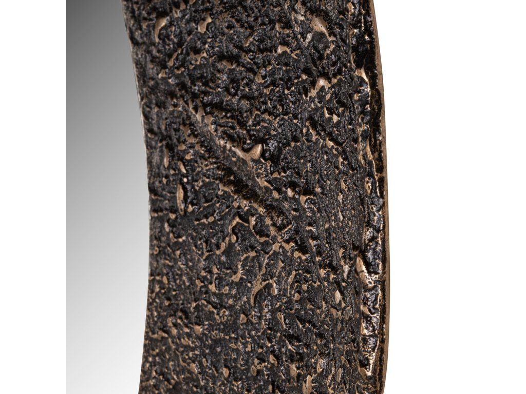 Toto zrkadlo má zaoblený tvar s tenkým rámom v bronzovom odtieni. Rafinovaný a rovný okraj vytvára pokojný vizuálny dojem. Jeho decentný dizajn a teplá farba ho robia vhodným do širokej škály interiérových štýlov.Dodatočné parametre