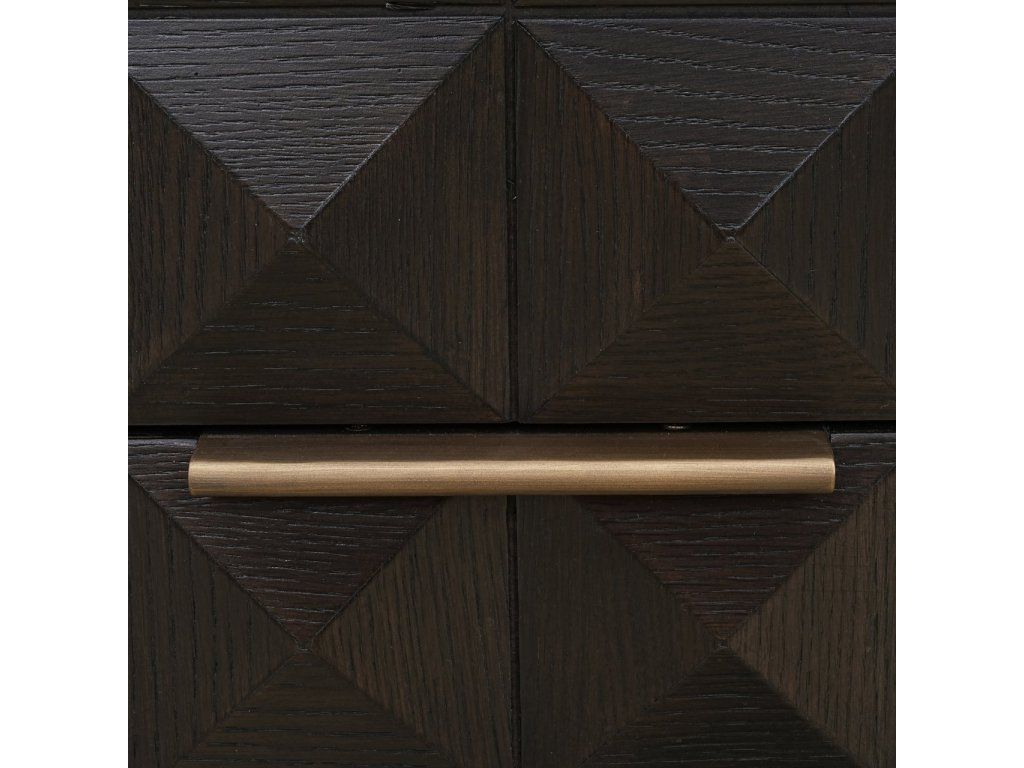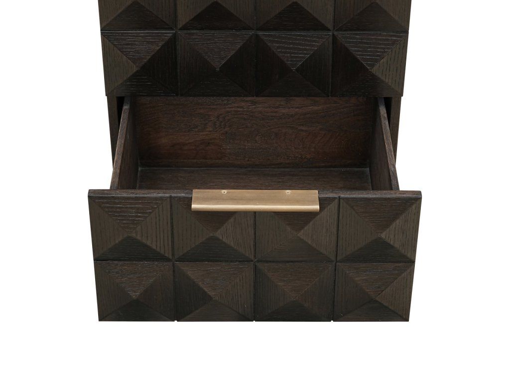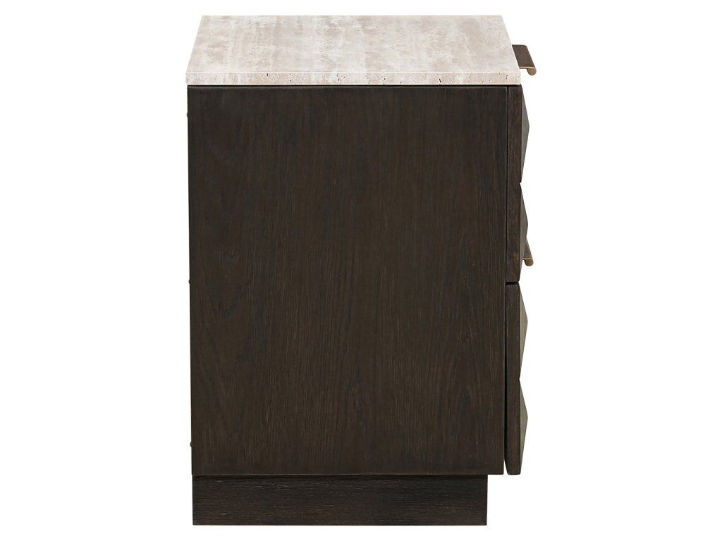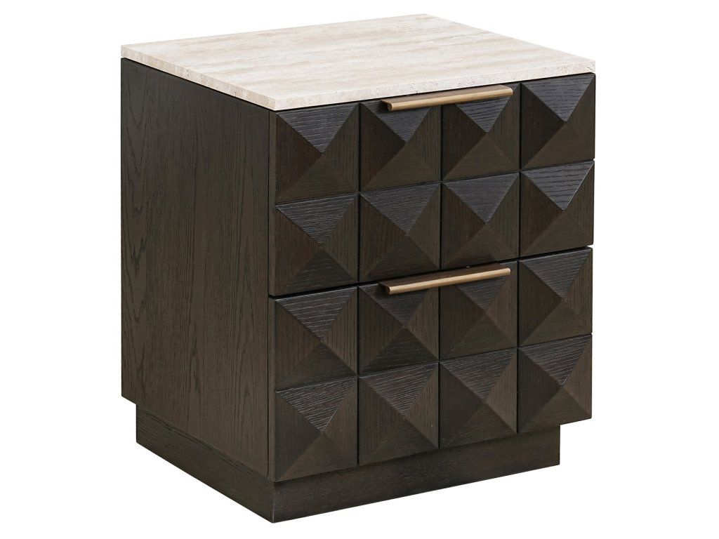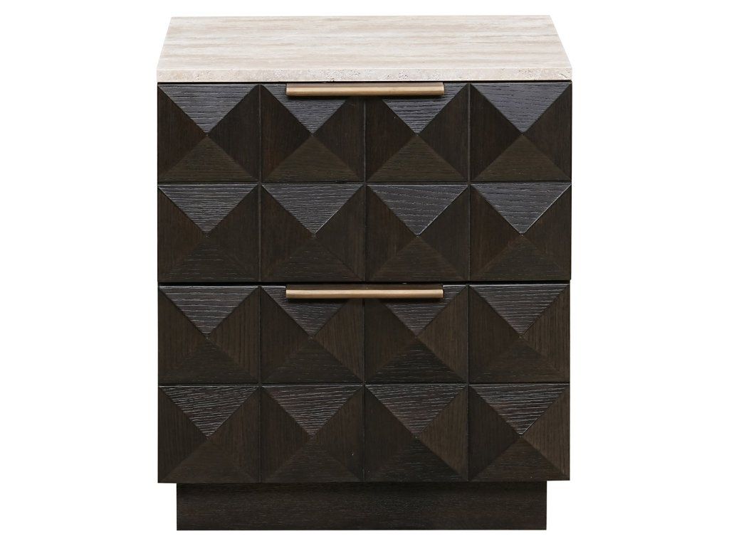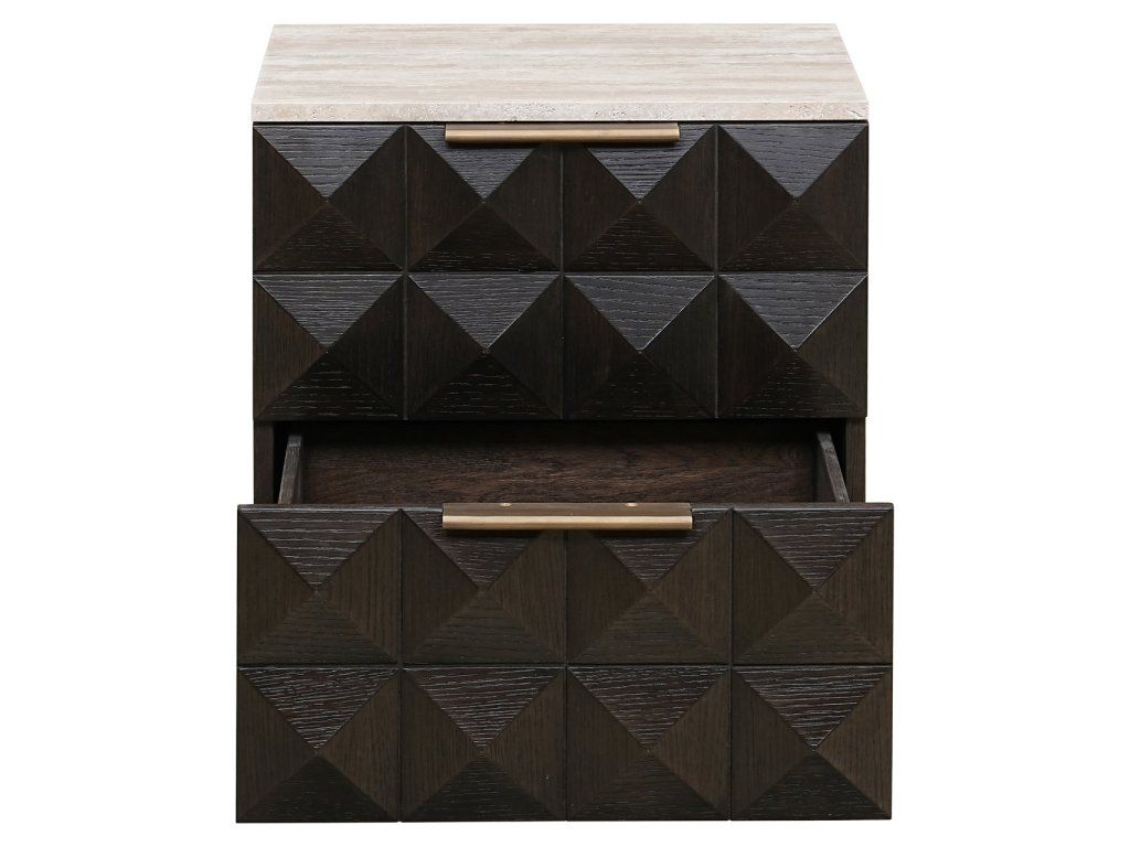 Nočný stolík Claremont je vyrobený z dubovej dyhy, dubového dreva, travertínu a dreva, čo zaručuje pevnú a štýlovú konštrukciu. Nočný stolík má dve zásuvky s výrazným geometrickým vzorom, ktoré mu dodávajú moderný a jedinečný vzhľad. Kamenná doska dodáva luxusný a odolný prvok. Tento nočný stolík ponúka praktický úložný priestor a je dokonalou kombináciou funkčnosti a dizajnu, takže sa hodí do rôznych štýlov interiéru.Dodatočné parametre