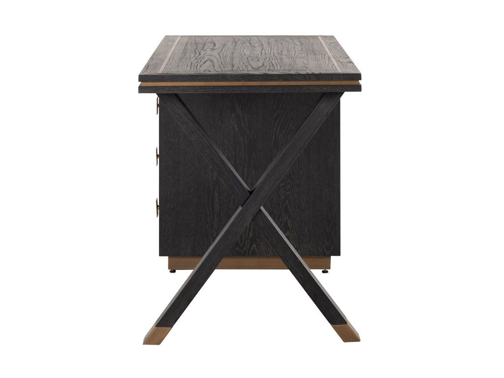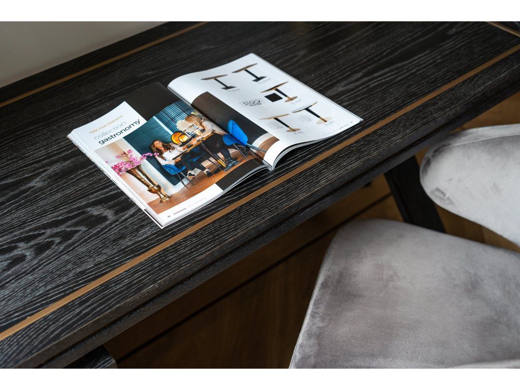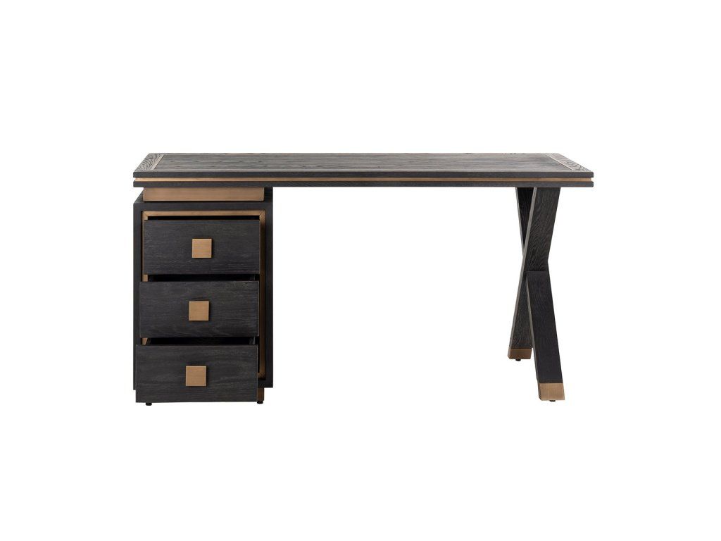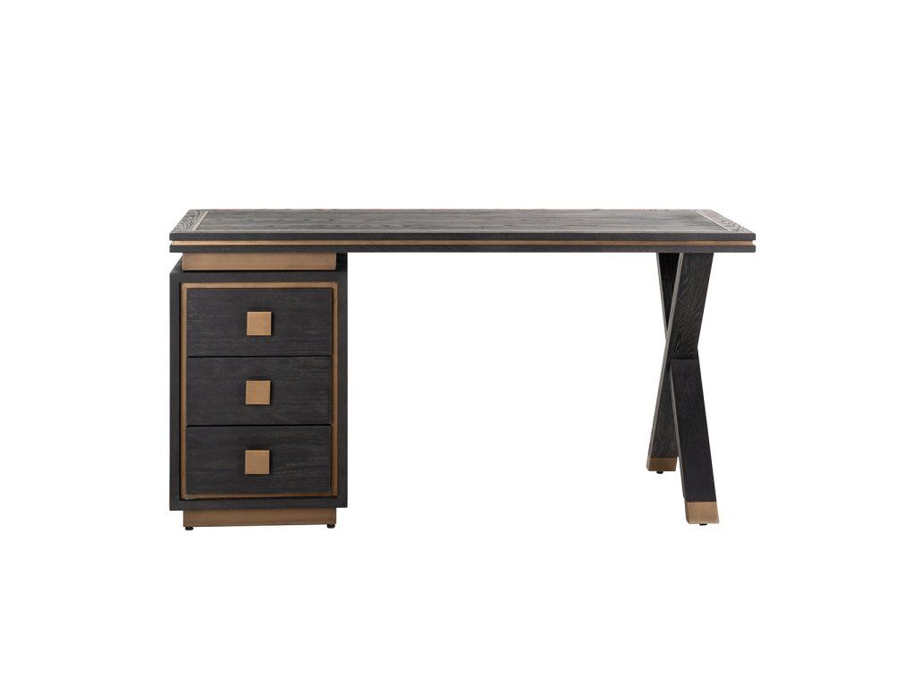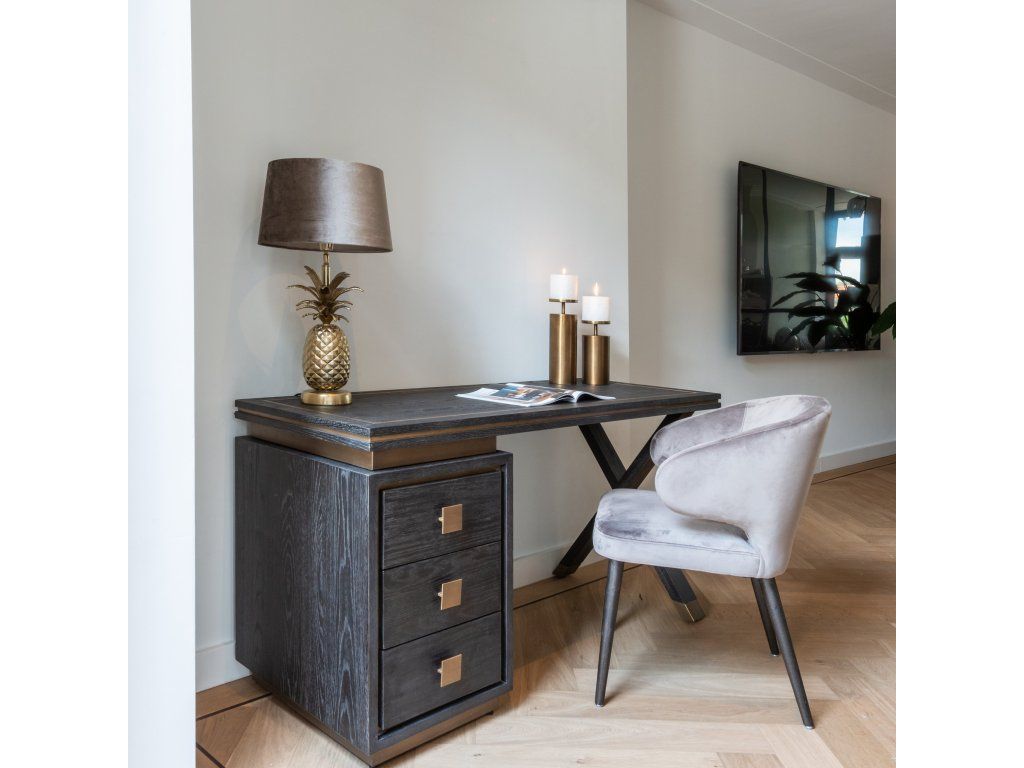 Bureau Hunter je elegantným doplnkom vašej kancelárie. Krásny stôl s 3 zásuvkami, vyrobený z čiernej dubovej dyhy a matných zlatých detailov. S ním sa (práca z domu) stane zábavou!Dodatočné parametre