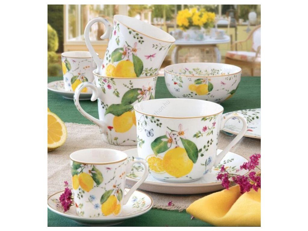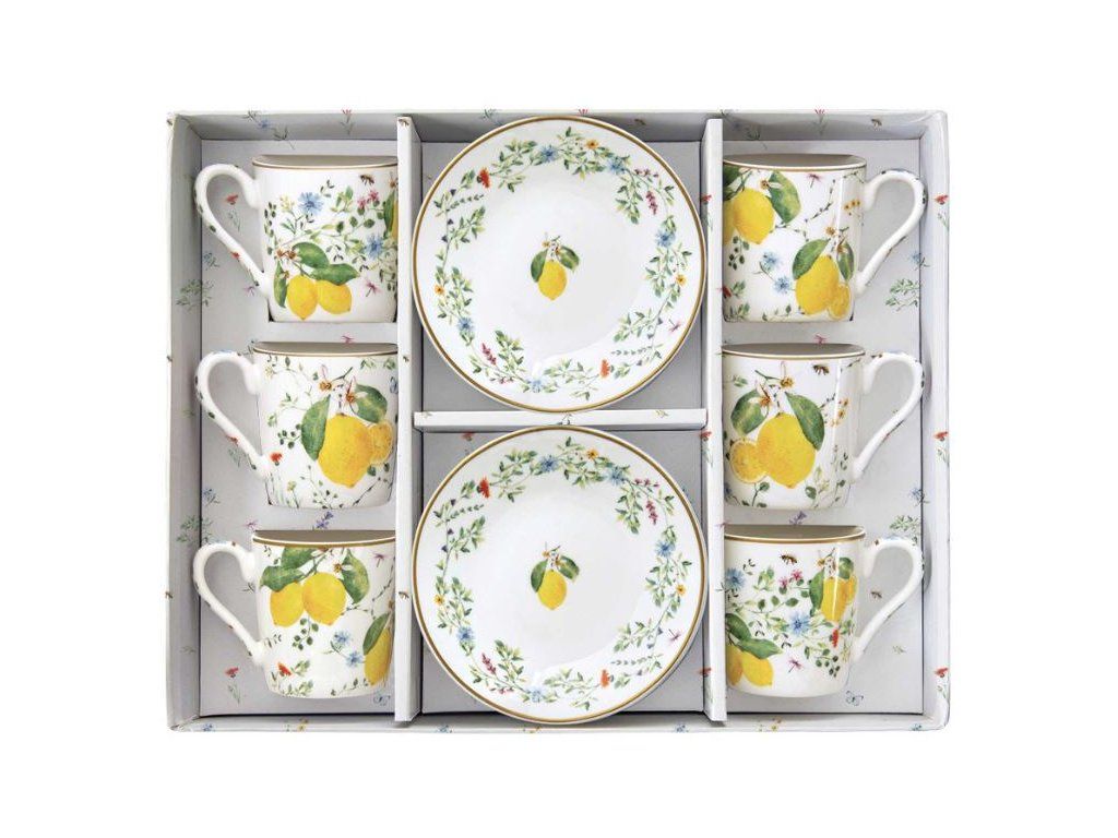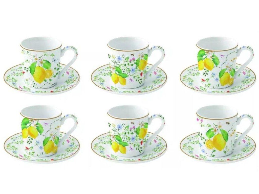Set pre 6 osôb - porcelánový hrnček espresso s tanierikom, 100ml, Coffee Mania Fleurs et Citrons