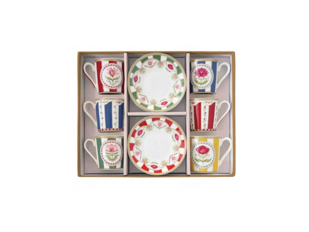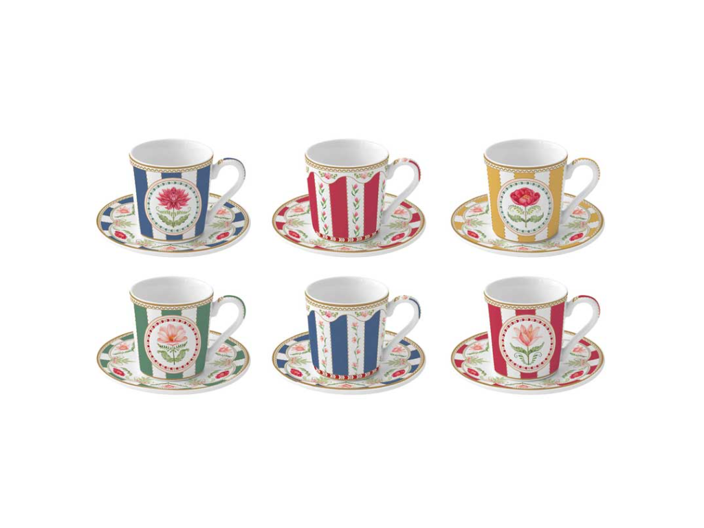 Set pre 6 osôb - porcelánový hrnček espresso s tanierikom, 100ml, Coffee Mania Flowery