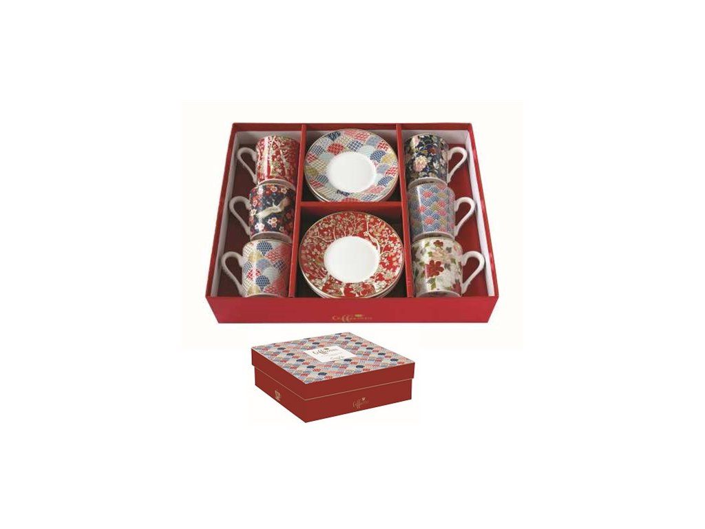 Elegantný set porcelánových šáločiek na espresso Vás očarí svojimi vzormi. Každý hrnček je jedinečný a zároveň ladiaci s ostatnými v sete. Je to vhodný darček pre milovníkov kávy, predáva sa v darčekovom balení. Šáločky s tanierikmi sú vhodné do umývačky riadu a mikrovlnnej rúry. 100ml, darčekové balenie, porcelán s farebnou potlačouDodatočné parametre