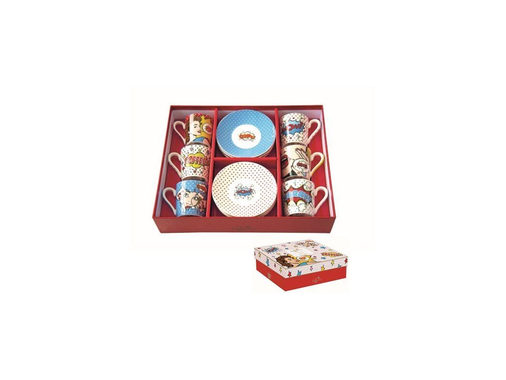 Set pre 6 osôb - porcelánový hrnček espresso s tanierikom, 100ml, Coffee Mania Pop Art