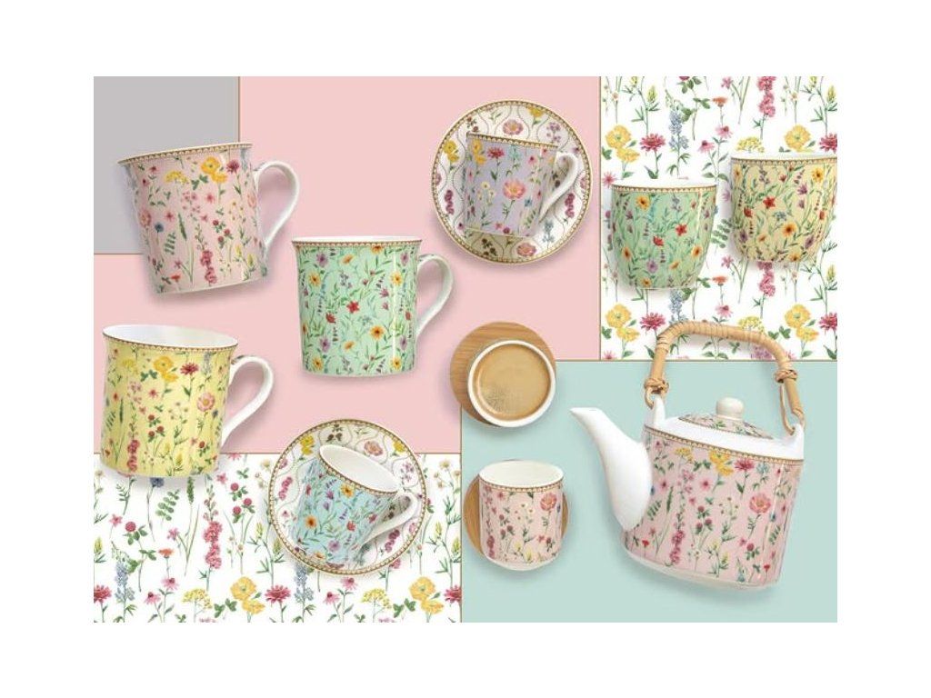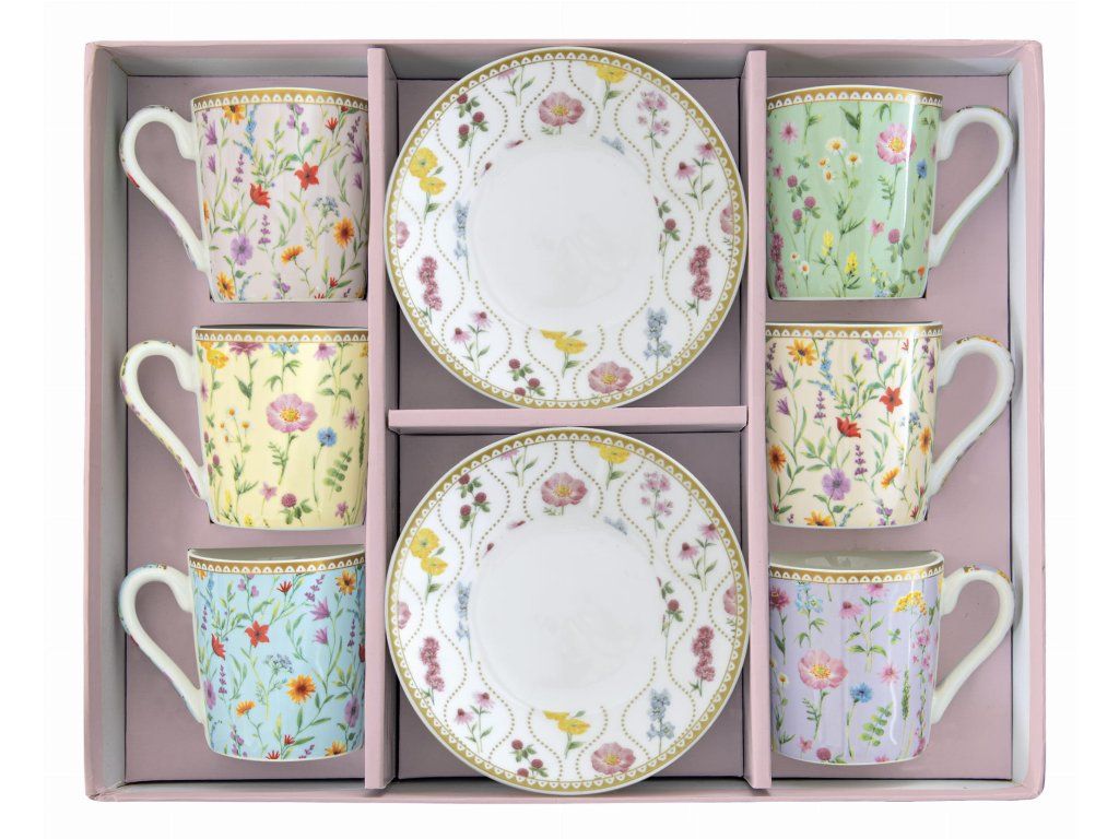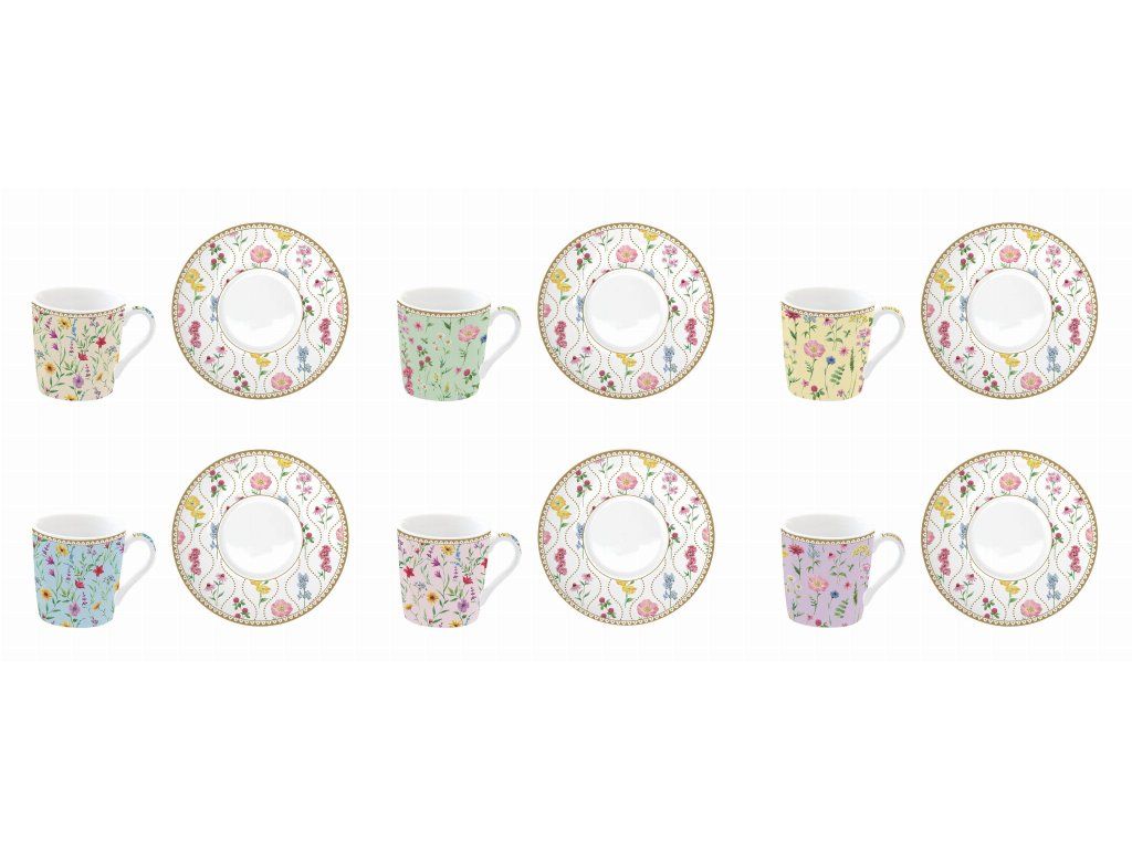 Set pre 6 osôb - porcelánový hrnček espresso s tanierikom, 100ml, Coffee Mania Spring Flowers
