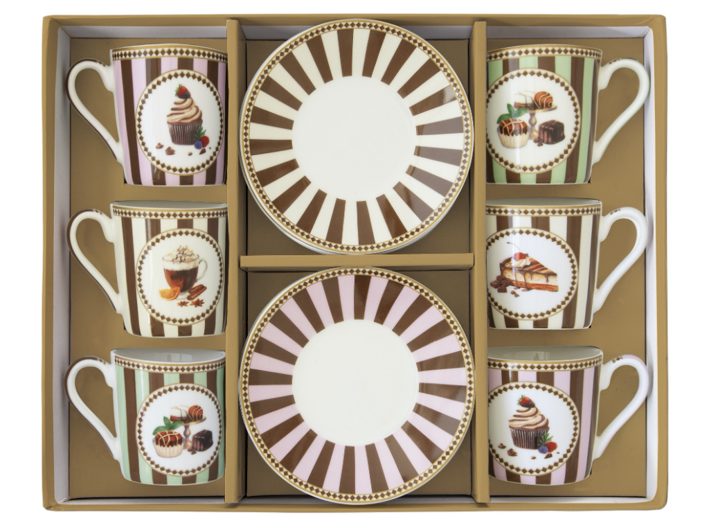 Set pre 6 osôb - porcelánový hrnček espresso s tanierikom, 100ml, Coffee Mania Sweet Moments