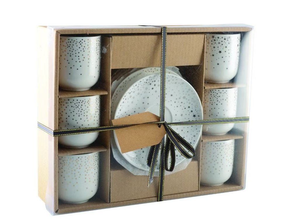 Set pre 6 osôb - porcelánový hrnček espresso s tanierikom Dots