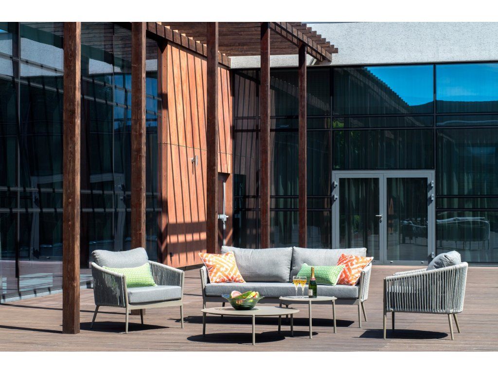 Kolekcia Serenity je vytvorená kombináciou hliníkových rámov so šnúrou so zvýšenými parametrami odolnosti. Je ľahká a príjemná na dotyk, dokonale dopĺňa estetiku moderných terás. Ležérna súprava sa skladá z piatich kusov, všetky zabalené v jednom balení. Vyrobená z hliníkového rámu, vyplnená pohodlnými vankúšmi a omotaná šnúrou, určite dodá vašej terase vyniknúť. Výhody produktu: podrúčky a operadlá sa vyznačujú jedinečnou a odolnou šnúrou, moderným dizajnom, odolnosťou voči poveternostným vplyvom, ľahká a ľahko sa premiestňuje a ľahko sa čistí. Detaily produktu: práškovo lakovaný hliník v taupe farbe, sivá olefínová látka – výnimočná kvalita, sivá šnúra so zvýšenými parametrami odolnosti. Rozmery súpravy: 2 kreslá 82x88x75, 2-miestna pohovka 82x190x75, stoly: priemer 70x50, priemer 104x29. Informácie o materiáli: Hliník: Je klasifikovaný ako ľahký kov. Jeho hustota je približne 2,7 g/cm³, vďaka čomu je takmer trikrát ľahší ako oceľ. Vďaka vhodnému tepelnému spracovaniu vykazujú hliníkové zliatiny niekoľkonásobne lepšie mechanické vlastnosti. Je ideálny pre vonkajší nábytok, pretože sa môže pochváliť pevnosťou a odolnosťou proti korózii. Práškovo lakovaný hliník je odolný voči meniacim sa poveternostným podmienkam a oderu. (Práškový náter sa nanáša na hliníkovú konštrukciu elektrostatickým striekaním. Pre dosiahnutie maximálnej odolnosti a odolnosti sa materiál zahrieva na teploty medzi 160 °C a 210 °C.) Pri nízkych teplotách sa hliník stáva ešte odolnejším. Voda ho nehrdzavie. Nevyžaduje si žiadnu údržbu ani neustálu starostlivosť. Tieto ľahké konštrukcie preto nevyžadujú značnú silu pri ich premiestňovaní z jedného miesta v záhrade na druhé. Napriek svojej ľahkosti sú stabilné a odolné a vydržia mnoho rokov používania v interiéri aj exteriéri. Látka OLEFIN do exteriéru: Pri výbere záhradného nábytku sa oplatí zvážiť vlastnosti materiálov, z ktorých je vyrobený. Patrí medzi ne vodeodolnosť, jednoduché čistenie, odolnosť voči škvrnám a možnosť odstraňovania poťahov. Látka OLEFIN to zaručuje. Olefín je syntetické vlákno vyrobené z polyolefínu, ako je polypropylén alebo polyetylén. Jedinečnosť tejto látky používanej v záhradnom nábytku zvýrazňujú jej špecifické vlastnosti: odolnosť voči vode, odolnosť voči vlhkosti, odolnosť voči plesniam, pohodlie a stálosť farieb, odolnosť voči zmene farby, odolnosť voči slnečnému žiareniu a poveternostným vplyvom, odolnosť voči škvrnám a jednoduché čistenie, minimálne zmršťovanie alebo naťahovanie, odolnosť voči oderu a trvanlivosť. Objavte kolekciu Serenity: