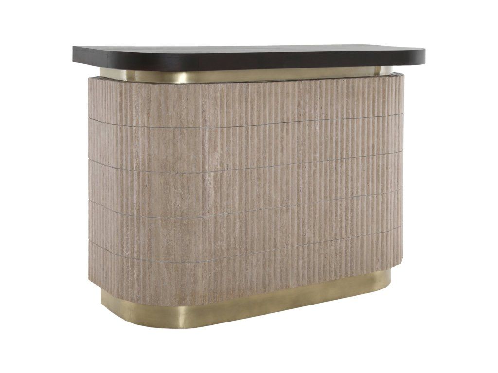 Martini bar je rafinovaný a moderný kus nábytku vyrobený z kombinácie travertínu a dreva. Dizajn sa vyznačuje čistými líniami a prirodzenou krásou travertínu, čo baru dodáva jemnú textúru a teplé, zemité tóny. Drevená doska poskytuje pevný a elegantný povrch, ideálny na servírovanie nápojov alebo ako dekoratívny priestor. Kombinácia týchto materiálov vytvára luxusný vzhľad, vďaka čomu je Martini bar štýlovým a funkčným doplnkom každej obývačky alebo zábavnej zóny.Dodatočné parametre