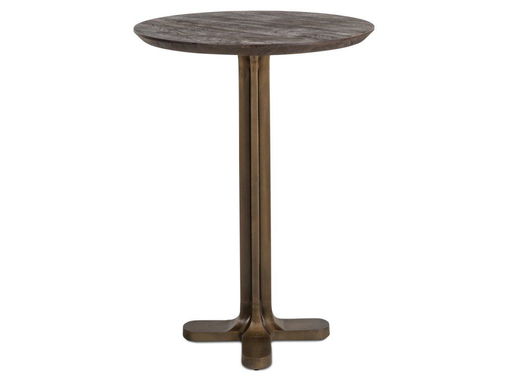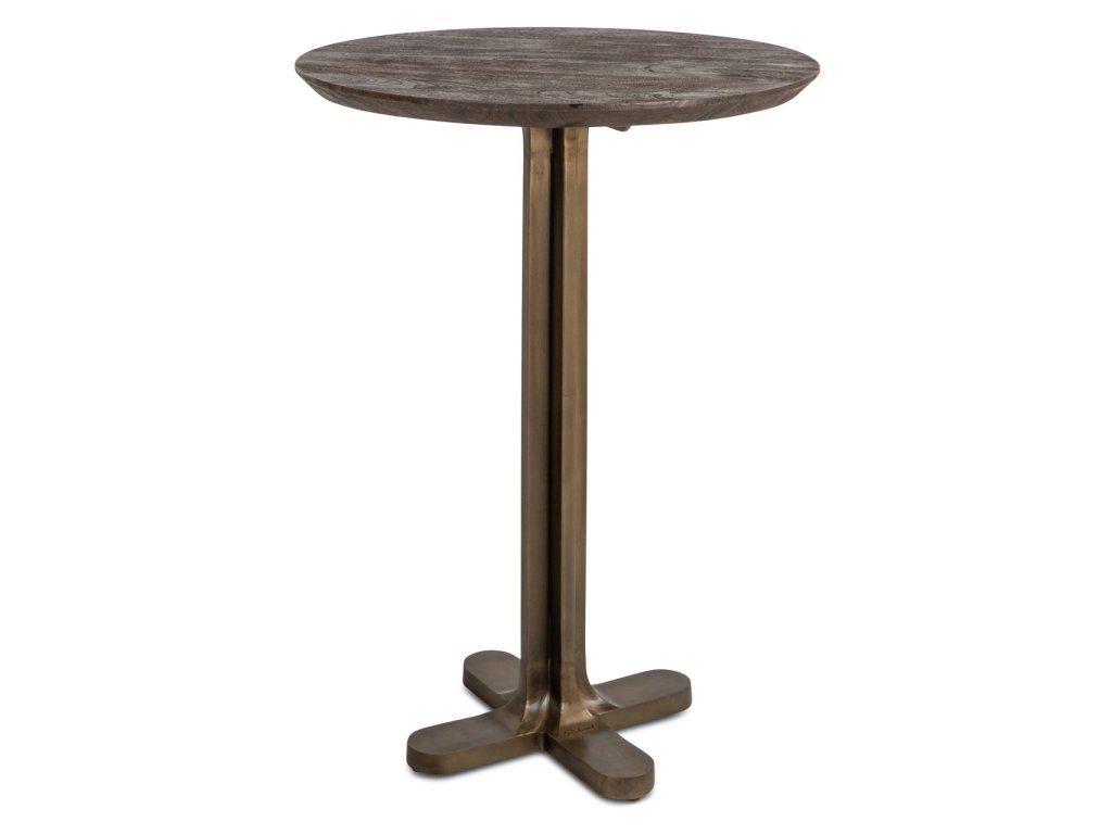 Táto okrúhla verzia barového stola Revelin kombinuje tmavohnedú dosku s nohami v brúsenej zlatej farbe. Sofistikovaný kúsok do kuchýň alebo barových kútov.Dodatočné parametre