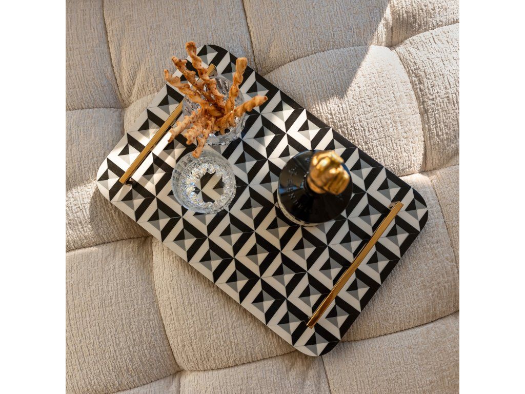 Podnos Birte nie je len tak hocijaký podnos, ale umelecké dielo samo o sebe. Vďaka svojmu jedinečnému čiernobielemu 3D efektu je to výrazný kúsok, ktorý určite upúta pozornosť. Či už ho použijete na servírovanie nápojov, ako dekoratívny prvok v obývačke alebo ako štýlový podložný tácku, podnos Birte dodá každému priestoru nádych modernosti a elegancie.Dodatočné parametre
