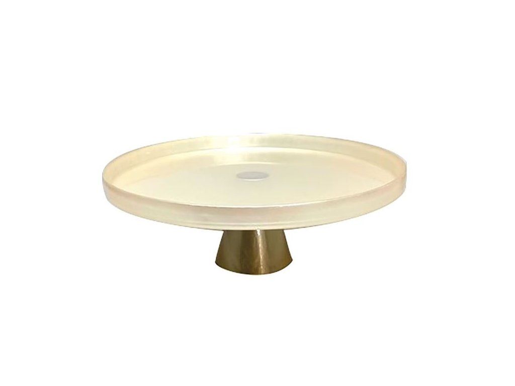 Tortový podnos vo farbe vanilky so zlatou podnožou je krásny darček, vhodný na servírovanie torty alebo dezertov, či na dekoráciu.Dodatočné parametre