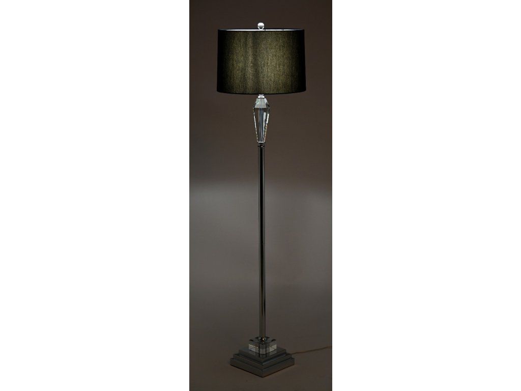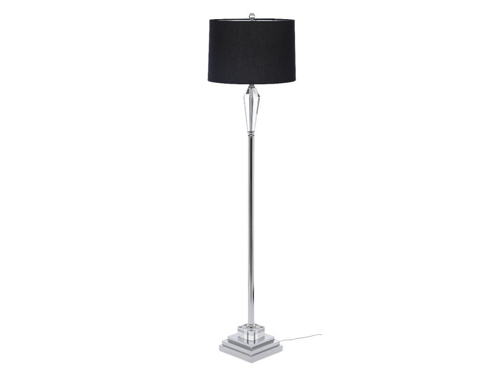 Stojaca lampa ARDEN, krištáľová, chrómová, výška 170 cm, s čiernym ľanovým tienidlom