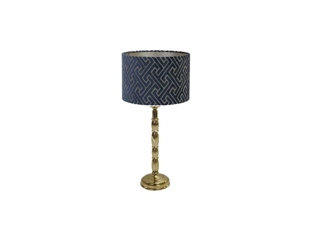 Moderné a trendy stolné svietidlo v prevedení zlatý nikel, skombinované so zamatovým tienidlom v tmavomodrej farbe so strieborným vnútrom. Je to luxusný dizajnový kúsok napríklad do Vašej spálne alebo obývačky.