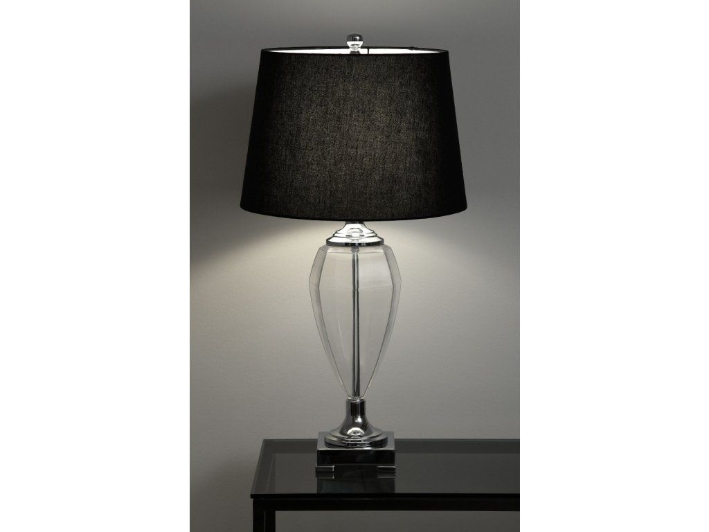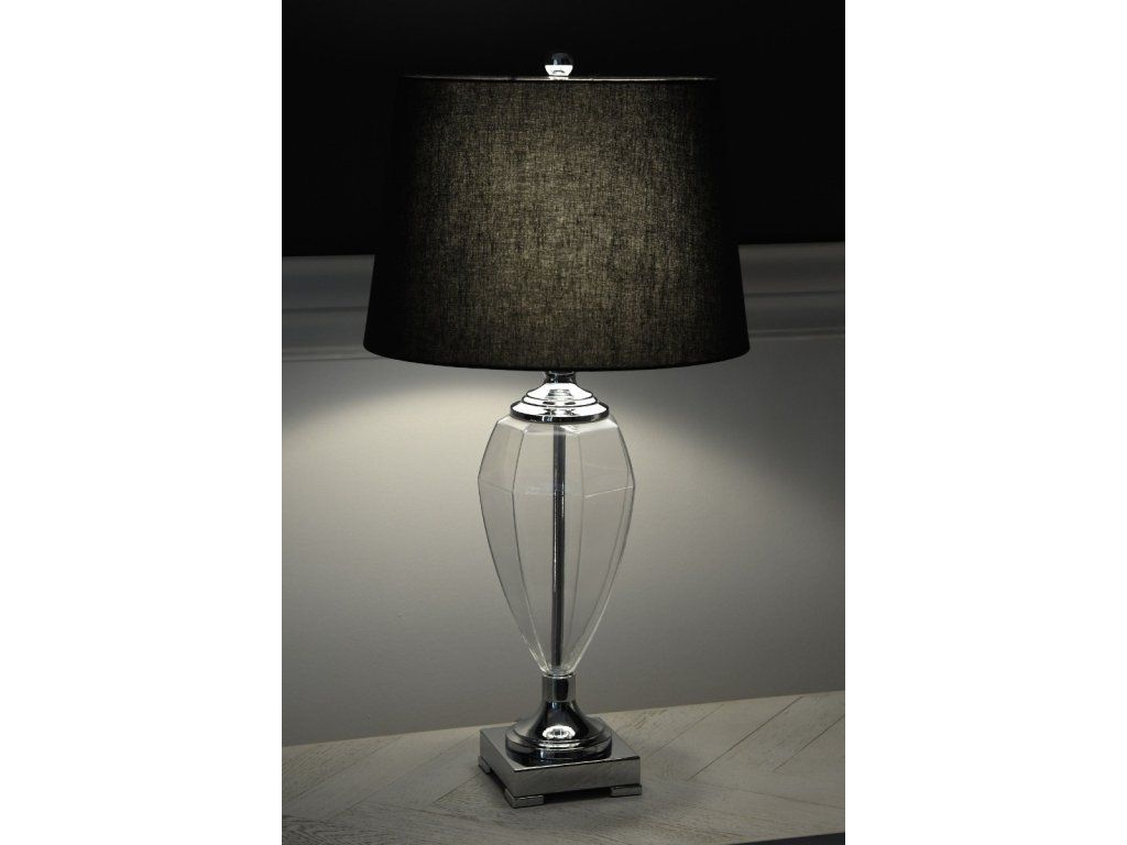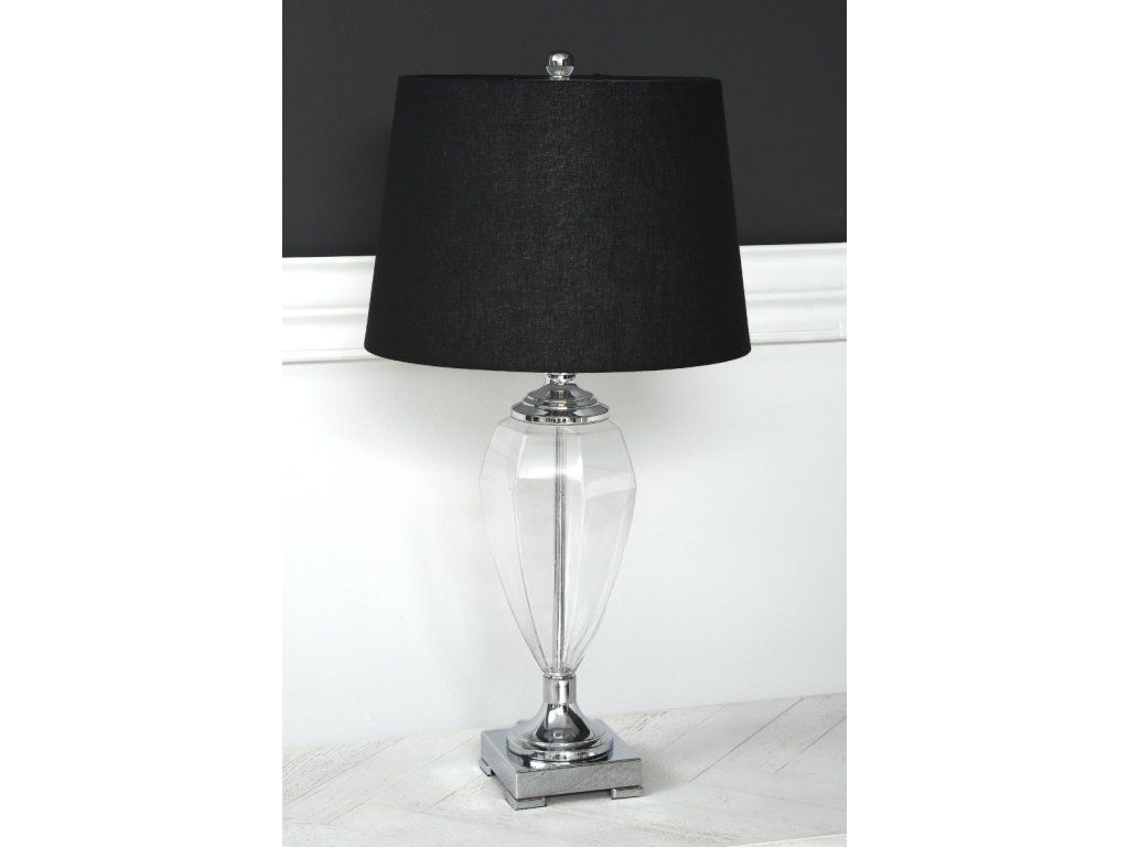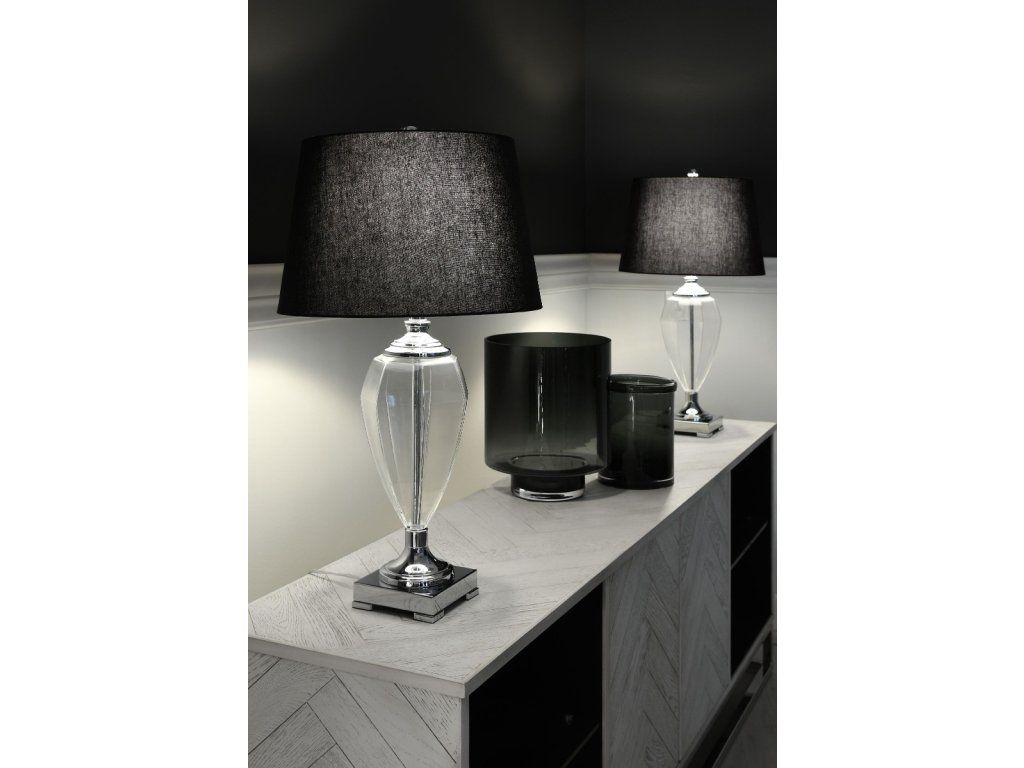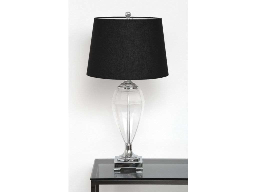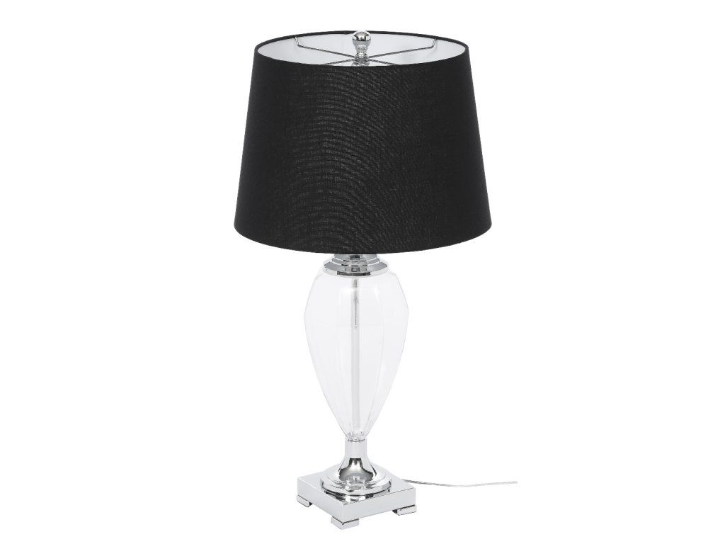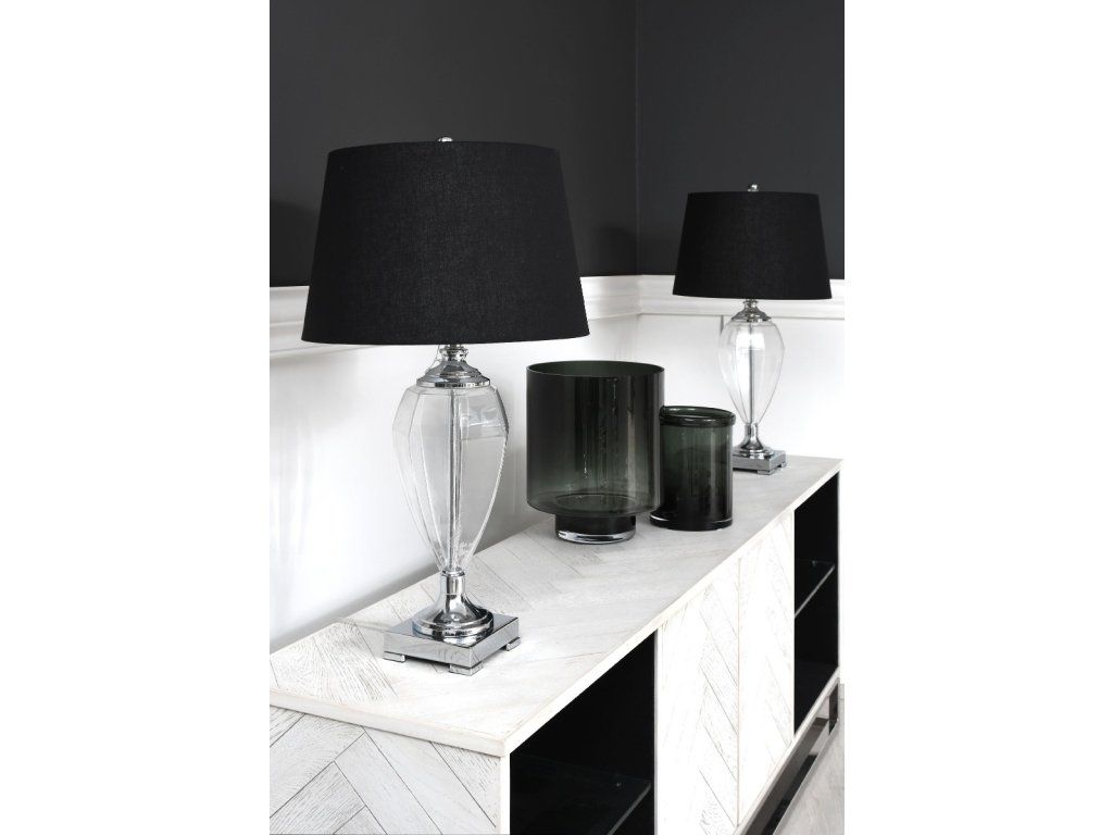 Stolová lampa GIANNA V76 CM, priehľadné sklo, chróm, s čiernym ľanovým tienidlom