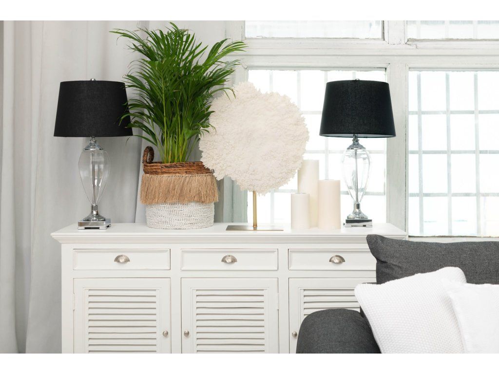 Stolová lampa Gianna je model, ktorý bude vyzerať najlepšie vo svetlých a priestranných interiéroch. Dopĺňa americký, loftový, moderný a glamour štýl a dobre sa kombinuje s nábytkom v talianskom štýle. V obývačke ju môžete umiestniť na komodu, konzolový stolík alebo odkladací stolík. V spálni by bol pre tento model ideálnym miestom nočný stolík, zatiaľ čo v pracovni by bol skvelou voľbou veľký písací stôl. Stolovú lampu Gianna odporúčame všetkým, ktorí oceňujú klasickú eleganciu. Jej čierne tienidlo v anglickom štýle a jedinečná priehľadná sklenená základňa dodávajú lampe nádych noblesy. Žiarovka nie je súčasťou balenia. Sklenená stolová lampa so štvorcovou kovovou základňou. Priehľadné sklo s chrómovanou kovovou povrchovou úpravou. Okrúhle tienidlo je vyrobené z čiernej ľanovej látky a má rozmery 33x41x28 cm.Dodatočné parametre