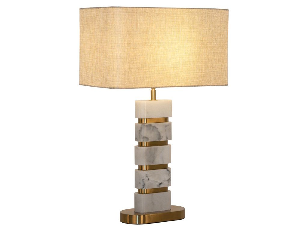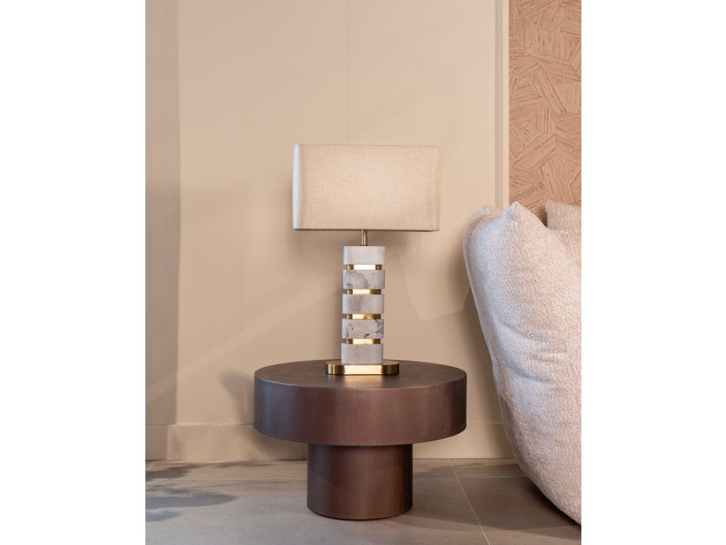 Stolová lampa Lenore vyžaruje nadčasovú eleganciu s luxusným mramorovým podstavcom a rafinovanými zlatými detailmi. Táto kombinácia vysoko kvalitných materiálov vytvára štýlový vzhľad, ktorý sa perfektne hodí do klasického aj moderného interiéru. Lampa sa dodáva s tienidlom, ktoré dotvára celkový vzhľad a vytvára teplé, atmosférické svetlo. Perfektný doplnok do vašej obývačky, spálne alebo kancelárie.Dodatočné parametre