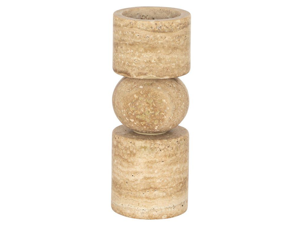 Svietnik Alaina kombinuje nadčasovú eleganciu s moderným nádychom vďaka svojmu travertínovému vzhľadu, čo je dizajnová voľba, ktorá okamžite evokuje klasickú architektúru a prírodnú krásu kameňa. Vyrobený z vysoko kvalitného kameňa, Alaina ponúka nielen pevnú a odolnú konštrukciu, ale aj estetickú príťažlivosť, ktorá sa hodí do moderného aj tradičného interiéru. Tento svietnik sa dodáva v dvoch jedinečných tvaroch, vďaka čomu je všestranným kusom, ktorý možno prispôsobiť rôznym štýlovým preferenciám. Či už sa rozhodnete pre jeden kus alebo kombináciu oboch tvarov, svietnik Alaina sľubuje, že bude výrazným stredobodom každého stola alebo povrchu, na ktorom je umiestnený, a dodá vášmu obytnému priestoru teplo, charakter a nádych luxusu.Dodatočné parametre