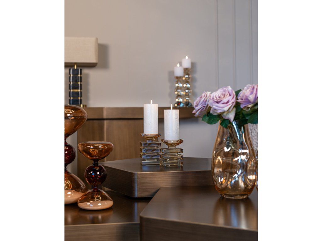 Svietnik Emie je rafinovaný doplnok, ktorý dodá vášmu interiéru elegantný a moderný nádych. Štýlový dizajn s lesklými prvkami krásne zachytáva svetlo a vytvára teplú a atmosférickú žiaru v každom priestore. Či už si vyberiete malú alebo veľkú veľkosť, Emie je ideálny pre rôzne príležitosti, od intímnych večerí až po slávnostné stretnutia. Tento svietnik je krásnou voľbou pre vytvorenie luxusnej atmosféry vo vašom domove.Dodatočné parametre