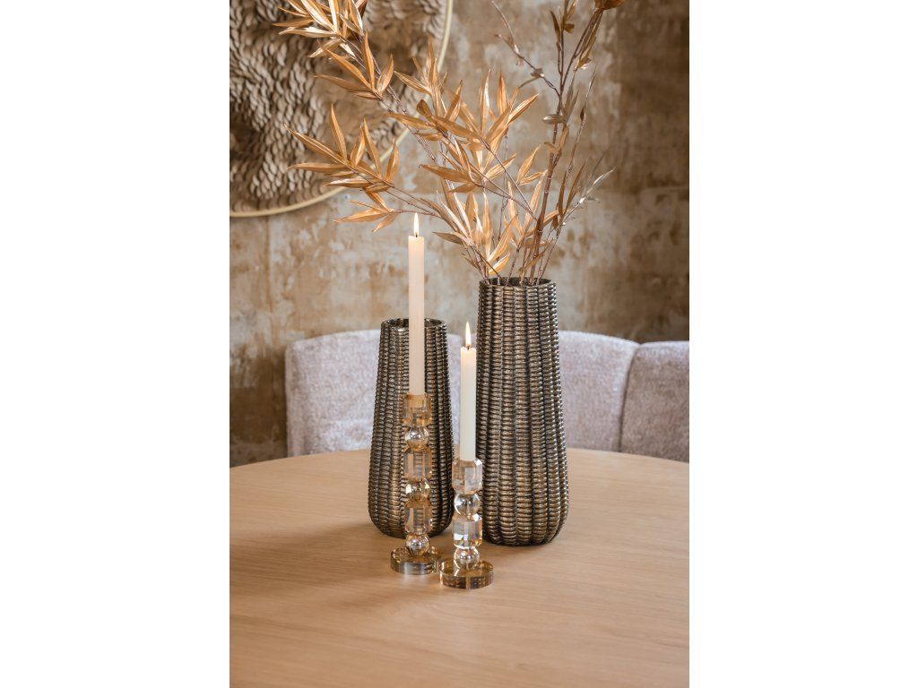 Svietnik Meral je krásnym doplnkom každého priestoru vďaka svojej elegantnej a decentnej farbe. Dizajn je moderný a nadčasový zároveň a bez námahy sa hodí do rôznych štýlov interiéru. Jemný odtieň svietnika vyžaruje pokoj a vyrovnanosť, vďaka čomu je ideálnou voľbou pre tých, ktorí chcú vylepšiť svoje bývanie alebo pracovný priestor štýlovým dekoratívnym prvkom. Svietnik je vyrobený s dôrazom na detail a remeselné spracovanie, čo prispieva k jeho rafinovanému vzhľadu. Je dostupný v malej aj veľkej variante, takže si môžete vybrať ten, ktorý najlepšie vyhovuje vášmu priestoru.Dodatočné parametre
