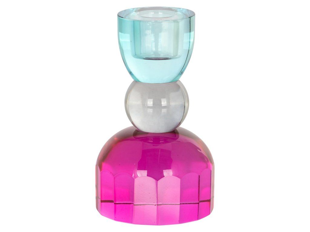 Svietnik Merlin je majstrovským dielom dizajnu a farby. S podstavcom z ružového skla, ktoré vyžaruje jemnú žiaru, je zvýraznený žiarivými modrými detailmi, ktoré mu dodávajú jedinečný vzhľad. Jemný kontrast medzi ružovou a modrou vytvára očarujúcu hru farieb, ktorá obohatí každý interiér.Dodatočné parametre