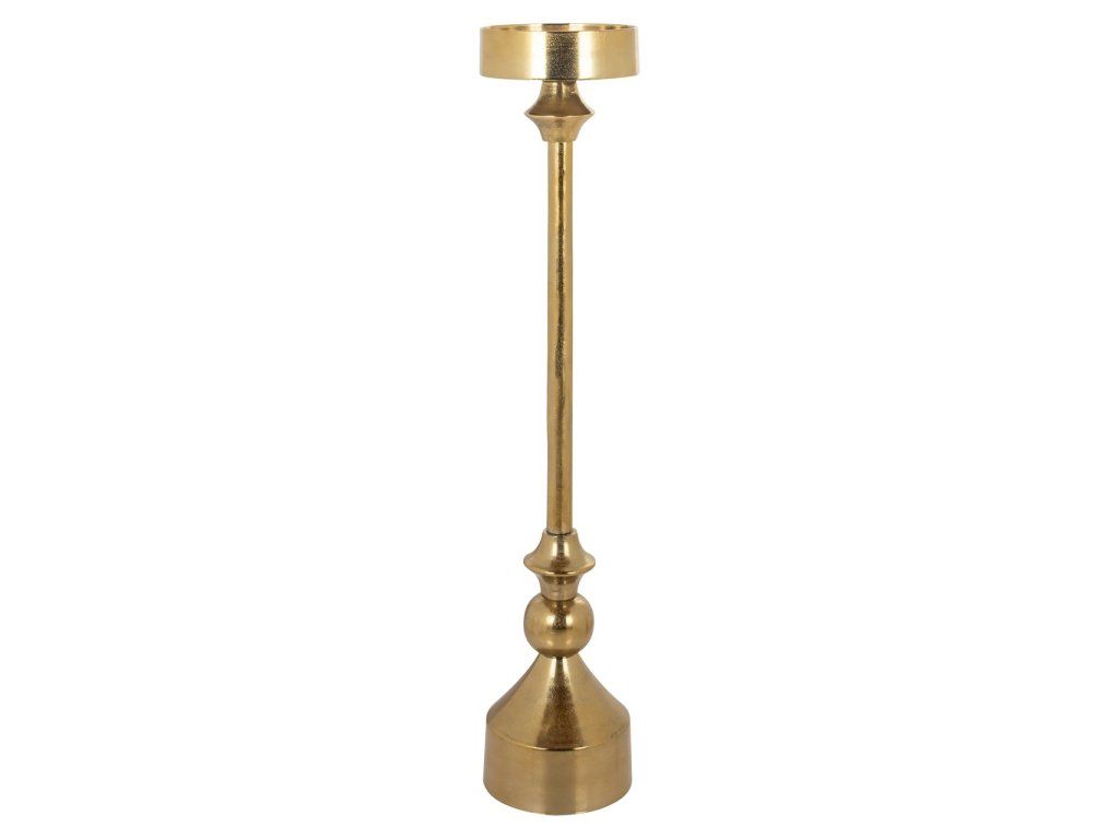 Svietnik Presley je elegantný a štýlový doplnok, dostupný v malej aj veľkej verzii. Vyrobený zo zlatého hliníka, tento svietnik vyžaruje luxus a eleganciu. Lesklý zlatý materiál dodá každému priestoru nádych pôvabu, zatiaľ čo elegantný a nadčasový dizajn zabezpečuje, že svietnik sa dokonale hodí do rôznych štýlov interiéru.Dodatočné parametre