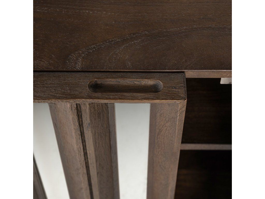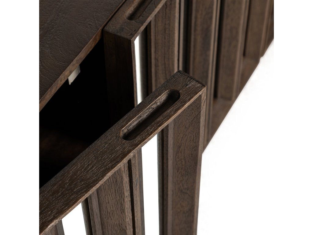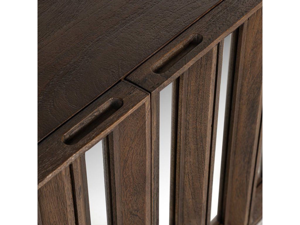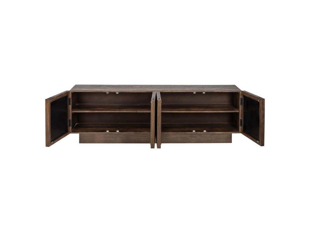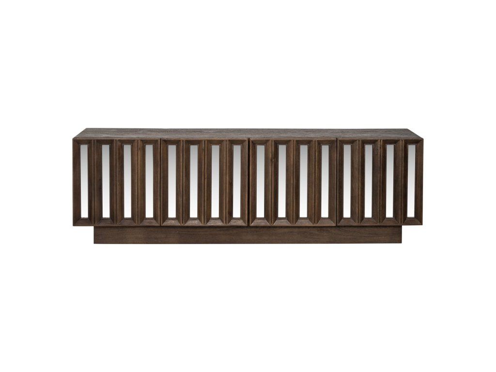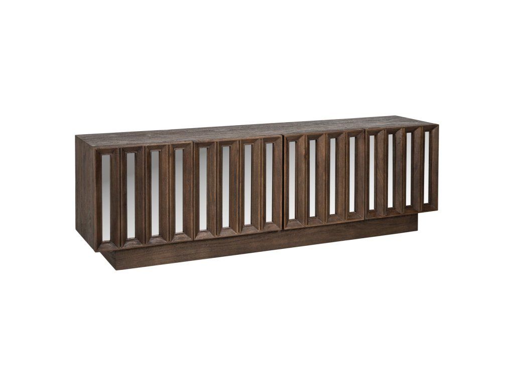 TV komoda Louvre Bryant so 4 dvierkami je štýlový a funkčný kus nábytku, ideálny na uloženie multimediálneho vybavenia a príslušenstva. Táto krásna komoda je vyrobená z vysoko kvalitného mangového dreva a vyznačuje sa jedinečným dizajnom so zrkadlom, ktoré jej dodáva elegantný a moderný vzhľad. Priestranný úložný priestor za štyrmi dvierkami ponúka dostatok miesta na všetky vaše potrebné veci, zatiaľ čo odolné mangové drevo dodá vášmu interiéru teplú a prirodzenú atmosféru.Dodatočné parametre
