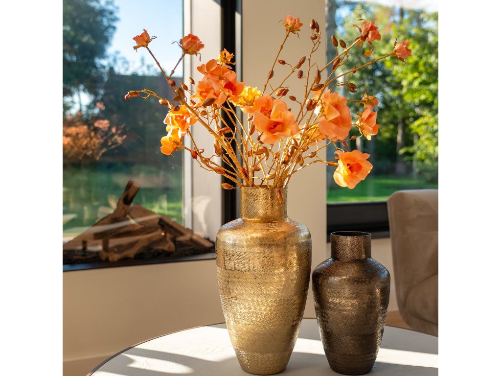 Váza Joah sa vyznačuje dvoma kontrastnými farebnými možnosťami. Väčšia veľkosť je vyrobená z výrazného zlatého hliníka, ktorý jej dodáva luxusný vzhľad. Menší variant má hlboký dymovo-čierny odtieň, ktorý zabezpečuje jemný a moderný akcent. Táto kombinácia robí vázu všestrannou pre rôzne štýly interiéru.Dodatočné parametre