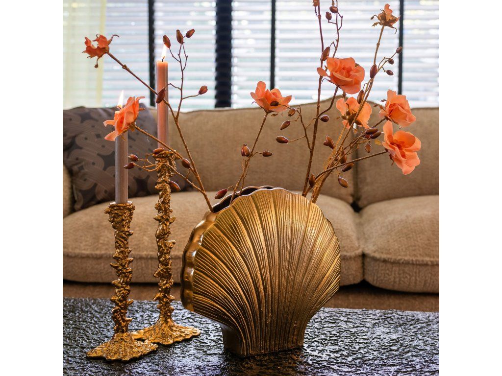 Váza Noé je vyrobená zo zlatého hliníka a má tvar mušle. Jednoduchý a rozpoznateľný dizajn ponúka pokojný vzhľad. Táto váza je dostupná v dvoch veľkostiach: malej a veľkej, vhodných pre rôzne priestory a potreby.Dodatočné parametre