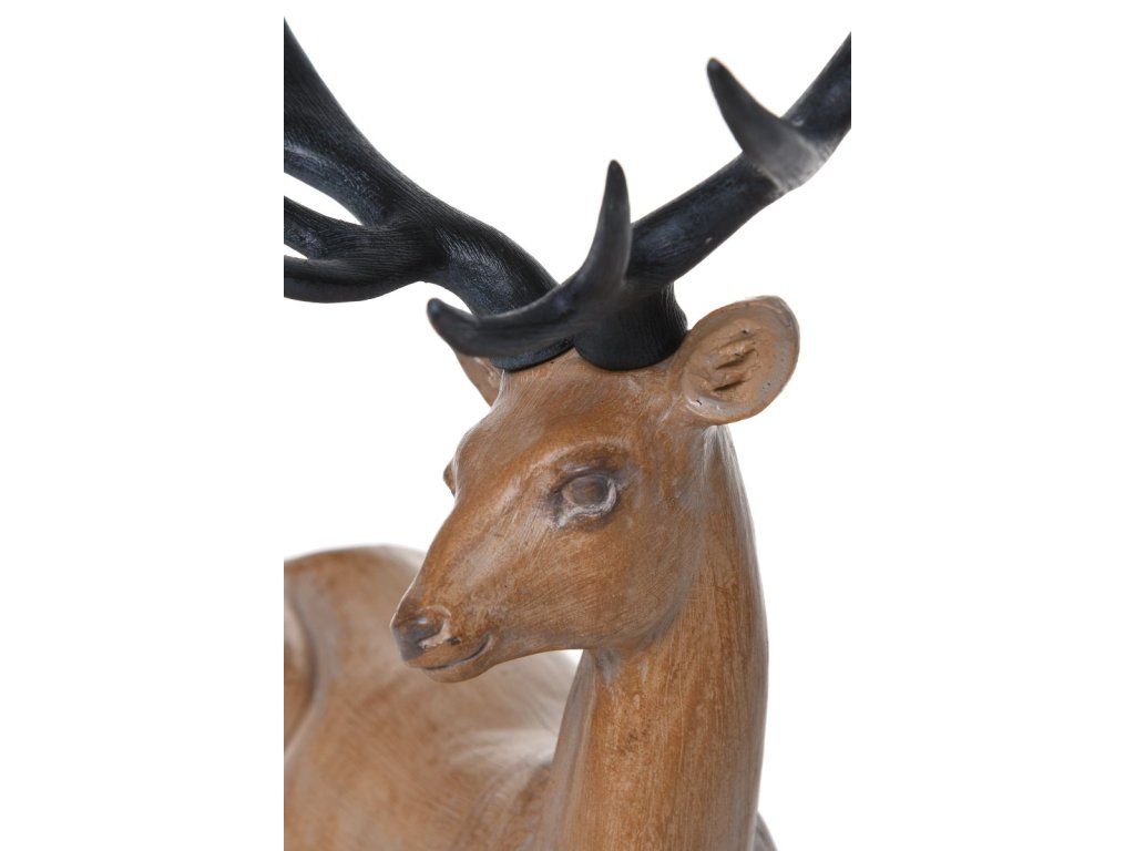Jeleň je symbolom zimy a prírody. Vyžaruje harmóniu a pokoj a vytvára atmosféru sviatočnej mágie. Figúrka jeleňa je preto jedinečným dekoratívnym prvkom, ktorý dodáva charakter a šarm každému sviatočnému aranžmánu. Prezentovaná figúrka zobrazuje toto majestátne zviera v ležiacej polohe. Ornament sa vyznačuje jasnými farbami, v ktorých dominujú odtiene hnedej a prírodného dreva. Jeho rozmery sú 33x15x35 cm. Táto figúrka jeleňa je ideálna na zdobenie obývačky, spálne, jedálne, chodby alebo kancelárie. Môže byť umiestnená samostatne na stole, poličke, komode alebo konferenčnom stolíku. Hodí sa aj ako súčasť väčšieho aranžmánu, napríklad ako vianočná dekorácia do stola. Prirodzený a majestátny jeleň dodá každému aranžmánu útulný a magický nádych. Vďaka jedinečnej povahe je táto dekorácia vhodná nielen na dekoráciu domácnosti. Je tiež skvelým elegantným darčekom pre milovanú osobu.Dodatočné parametre