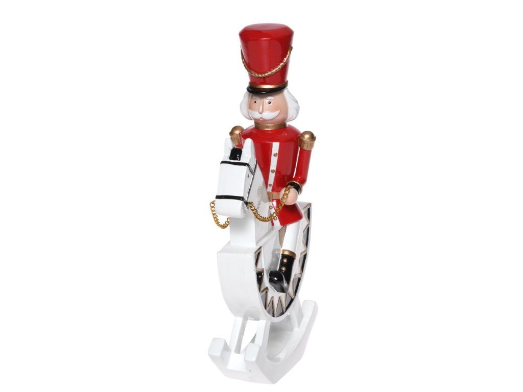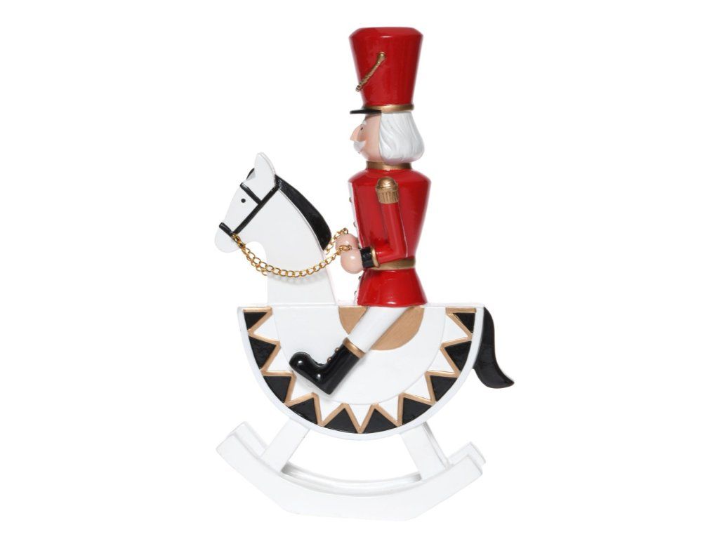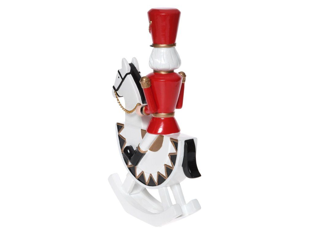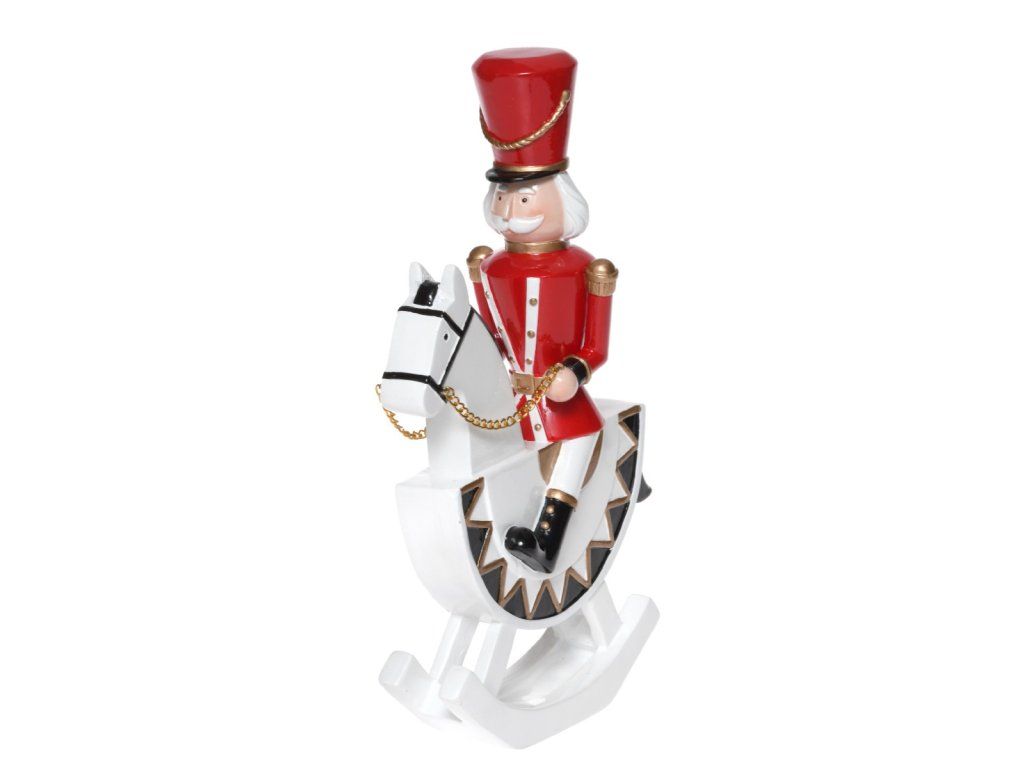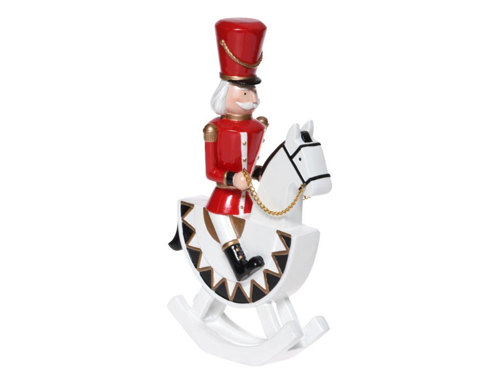 FIGÚRKA VOJAKA NA HOJDACOM KOŇOVI 19X8X29CM BIELA A ČERVENÁ