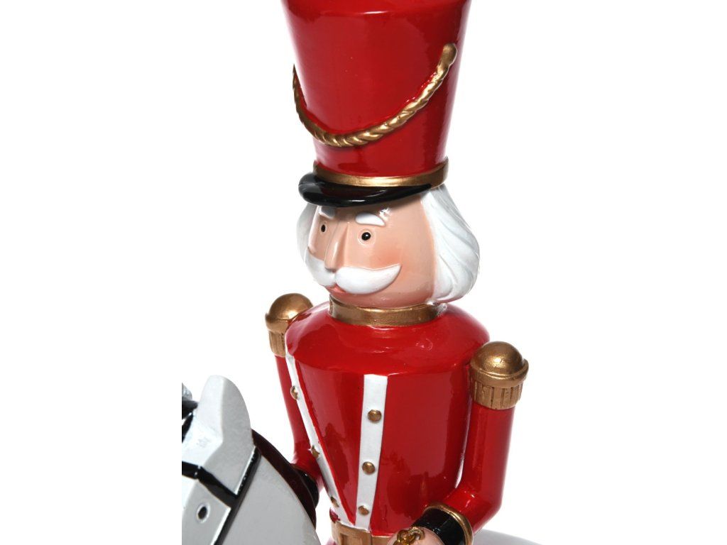 Táto vianočná figúrka v plnej veľkosti zobrazuje vojaka na hojdacom koni. Je to zaujímavá a elegantná vianočná dekorácia. Vyniká krásnymi farbami a geometrickým dizajnom. Figúrka je prepracovaná do detailov. Výrobok má rozmery 19x8x29 cm a je vyrobený výlučne z vysoko kvalitnej živice. Vďaka tomu je vojak na hojdacom koni dekoráciou nielen na jednu sezónu, ale aj na ďalšie roky. Táto ozdoba ponúka mnoho dizajnových možností. Hodí sa ako súčasť sviatočných aranžmánov alebo ako dekorácia do stredu stola. Bude krásne vyzerať aj samostatne na príborníku, poličke alebo konferenčnom stolíku. Vďaka vysokej estetike je vojak na hojdacom koni vkusným darčekom na Mikuláša a/alebo pod vianočný stromček. Figúrka vojaka na hojdacom koni je univerzálna vianočná dekorácia – hodí sa do každého interiéru. Bude vyzerať dobre v klasických aj moderných interiéroch. Škandinávske aranžmány budú tiež dobrým pozadím pre figúrku.Dodatočné parametre
