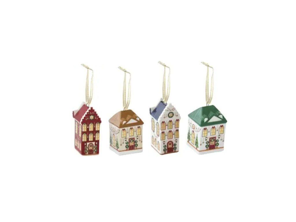 Set sa skladá zo 4 kusov domčekov s vianočným motívom, každá ozdoba je iná, ale zároveň ladiaca s ostatnými v sete. Je to nádherná dekorácia vianočného interiéru. Vhodné aj ako darček pre Vašich blízkych, balenie produktov je darčekové. V sete sa nachádzajú 4 domčeky, každý inej farby (červená, zelená, modrá a béžová). Kombinácia domčekov je náhodná. Materiál: Porcelán Rozmer 1 ks: 3.5 x 6 cmDodatočné parametre