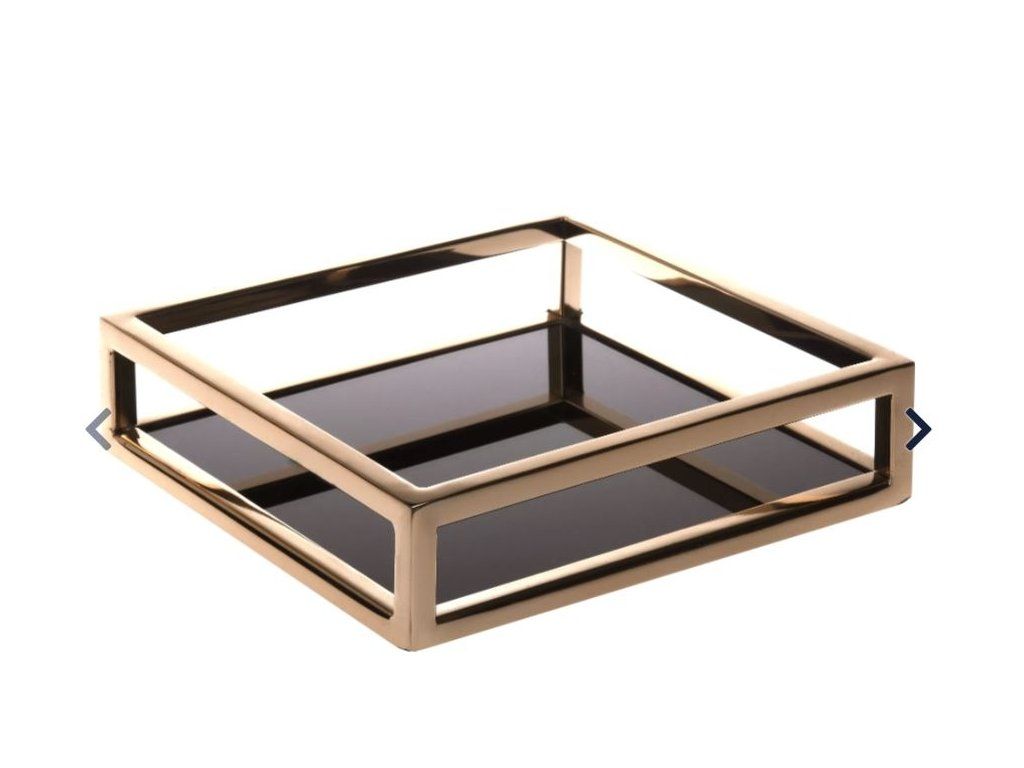 Elegantný podnos na drobnosti na Vašom stole alebo na servírovanie dezertu. Rozmer: 20x20x5 cm Materiál: oceľ, skloDodatočné parametre