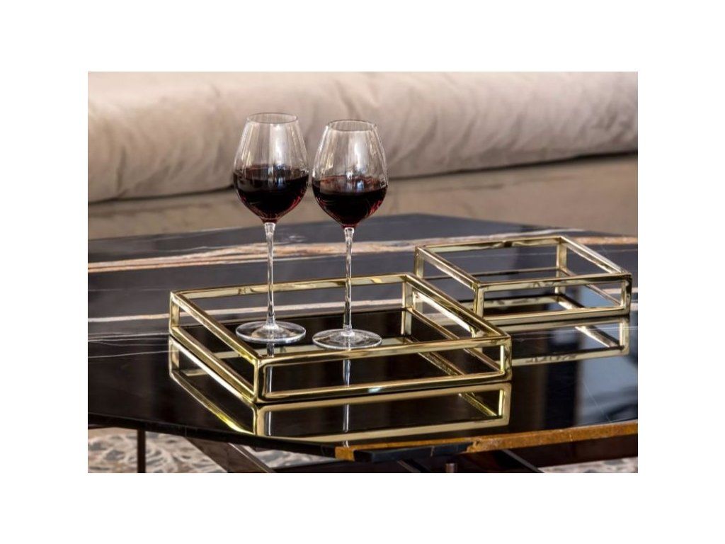 Podnos štvorcový zlatý s čiernym zrkadlom, 20x20 cm